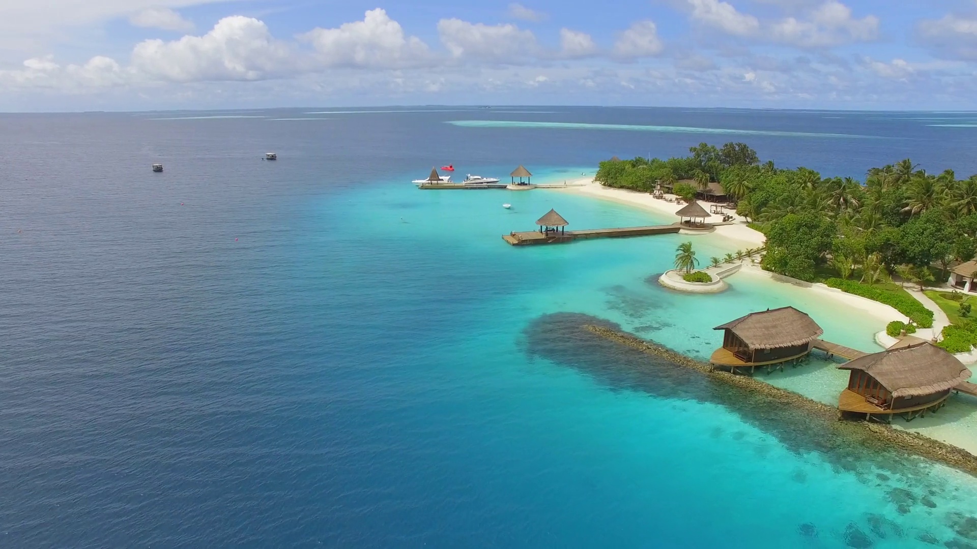 Aerial View Of Bungalow Resort In The Middle Of Forest Maldives IslandÂ