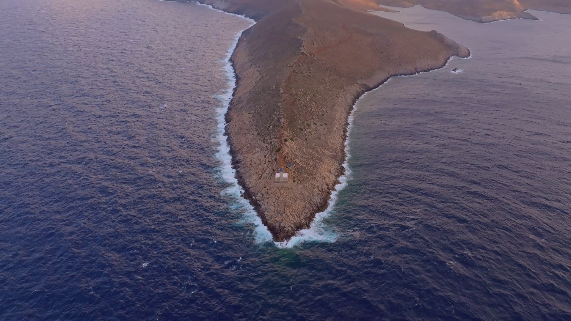 Aerial View Of Cape Tainaron Lighthouse At Sunrise Over The Serene Mediterranean Sea Lagia GreeceÂ