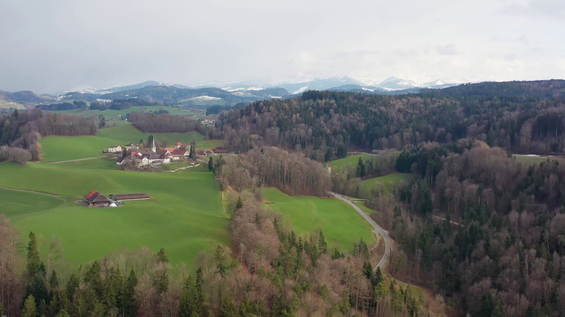 Aerial View Of Flawil Village Nestled Amid Rolling Green Hills And Dense Forests A Tapestry Of Rural Charm Under A Vast Sky Flawil St Gallen SwitzerlandÂ