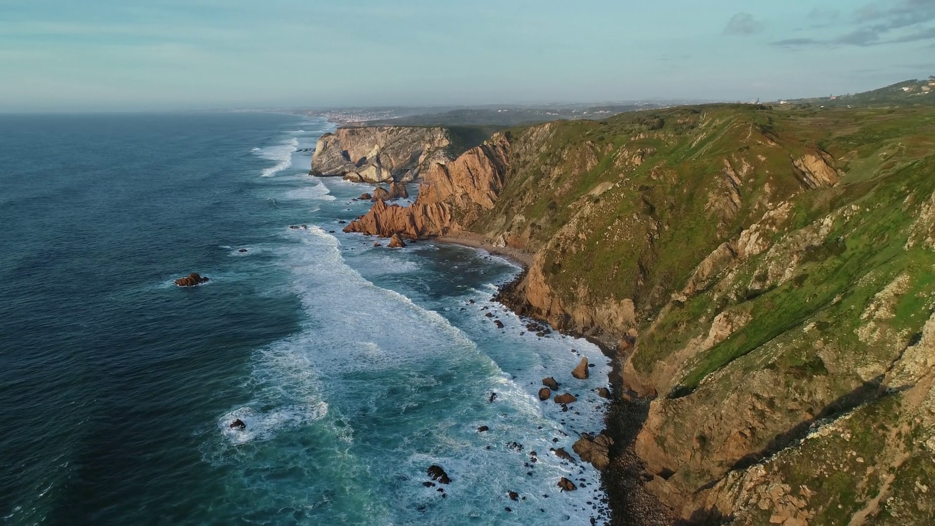 Aerial View Of Lighthouse At Cape Roca Cabo Da Roca At Sunset The Westernmost Point Of Continental Europe Portugal 4kÂ