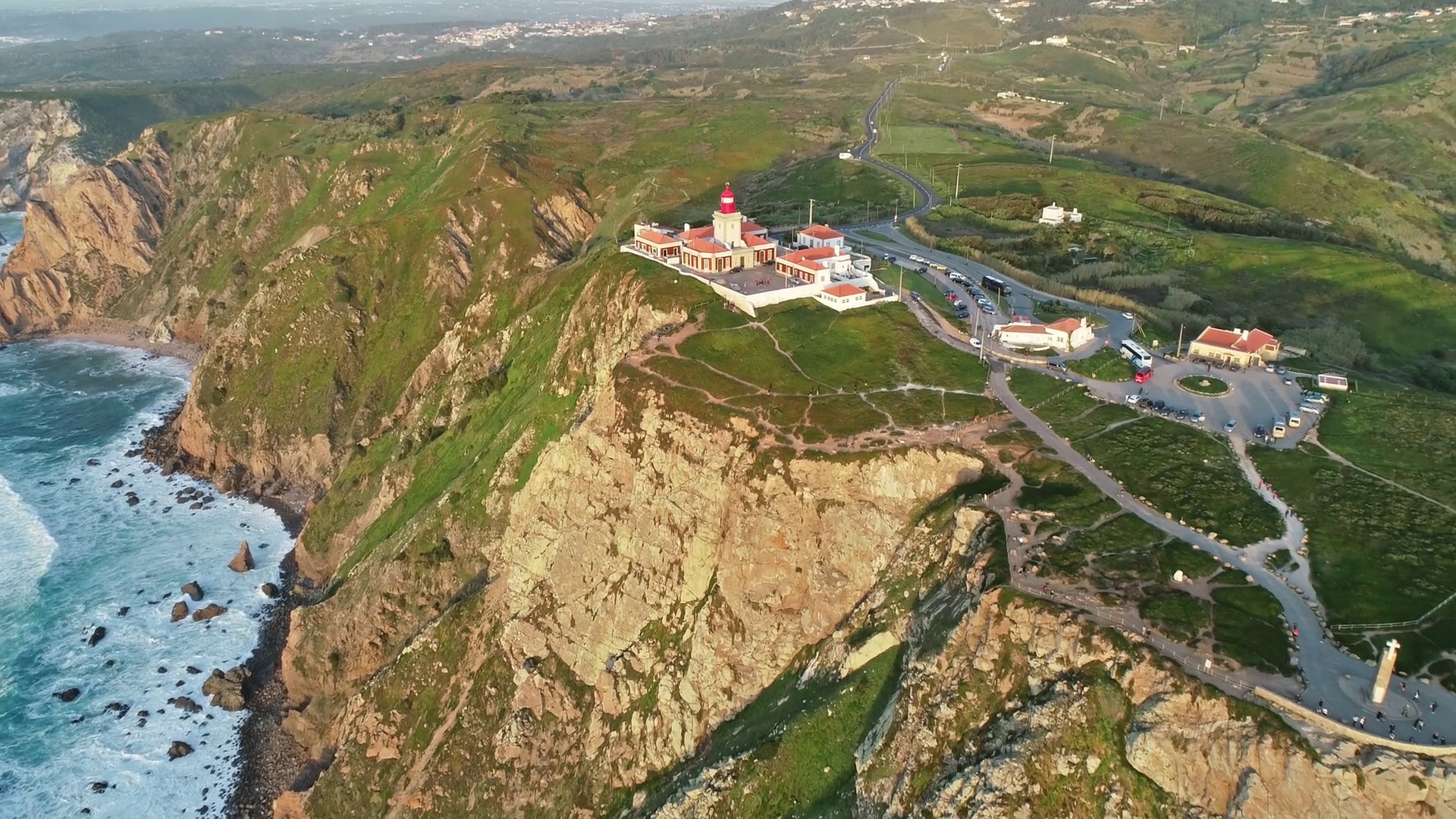Aerial View Of Lighthouse At Cape Roca Cabo Da Roca At Sunset The Westernmost Point Of Continental Europe Portugal 4kÂ