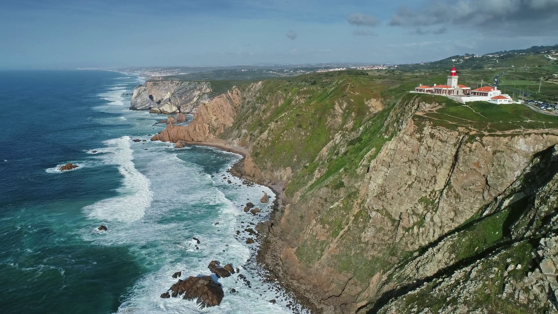 Aerial View Of Lighthouse At Cape Roca Cabo Da Roca The Westernmost Point Of Continental Europe Portugal 4kÂ