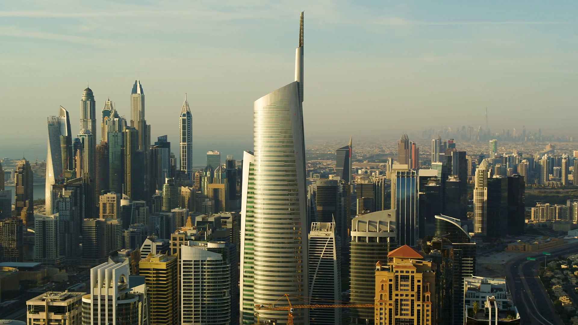 Aerial View Of Multilanes Highway Crossing The City Dubai UaeÂ