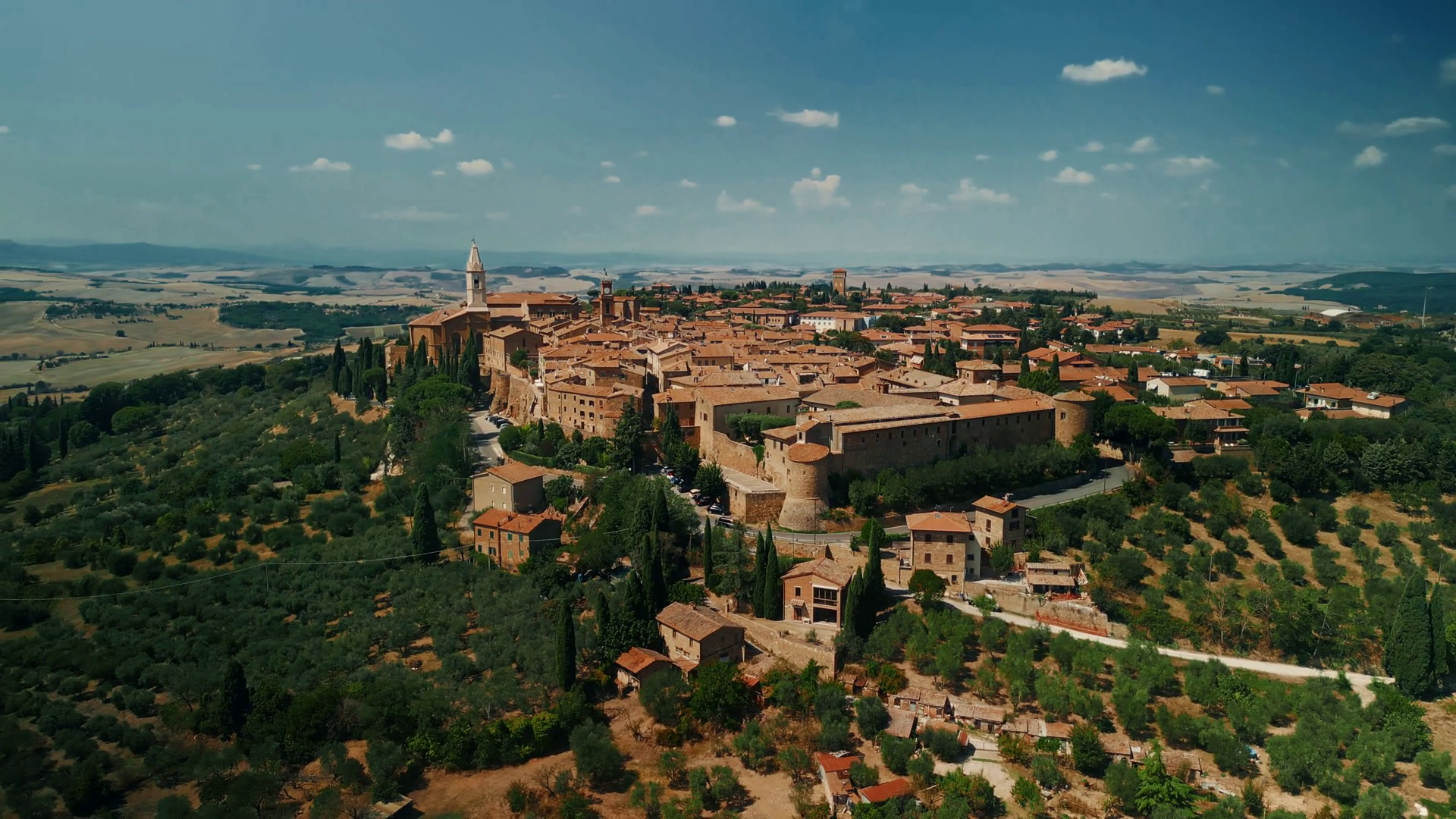 Aerial View Of Pienza Historic Town And Tuscan Landscape In SummerÂ