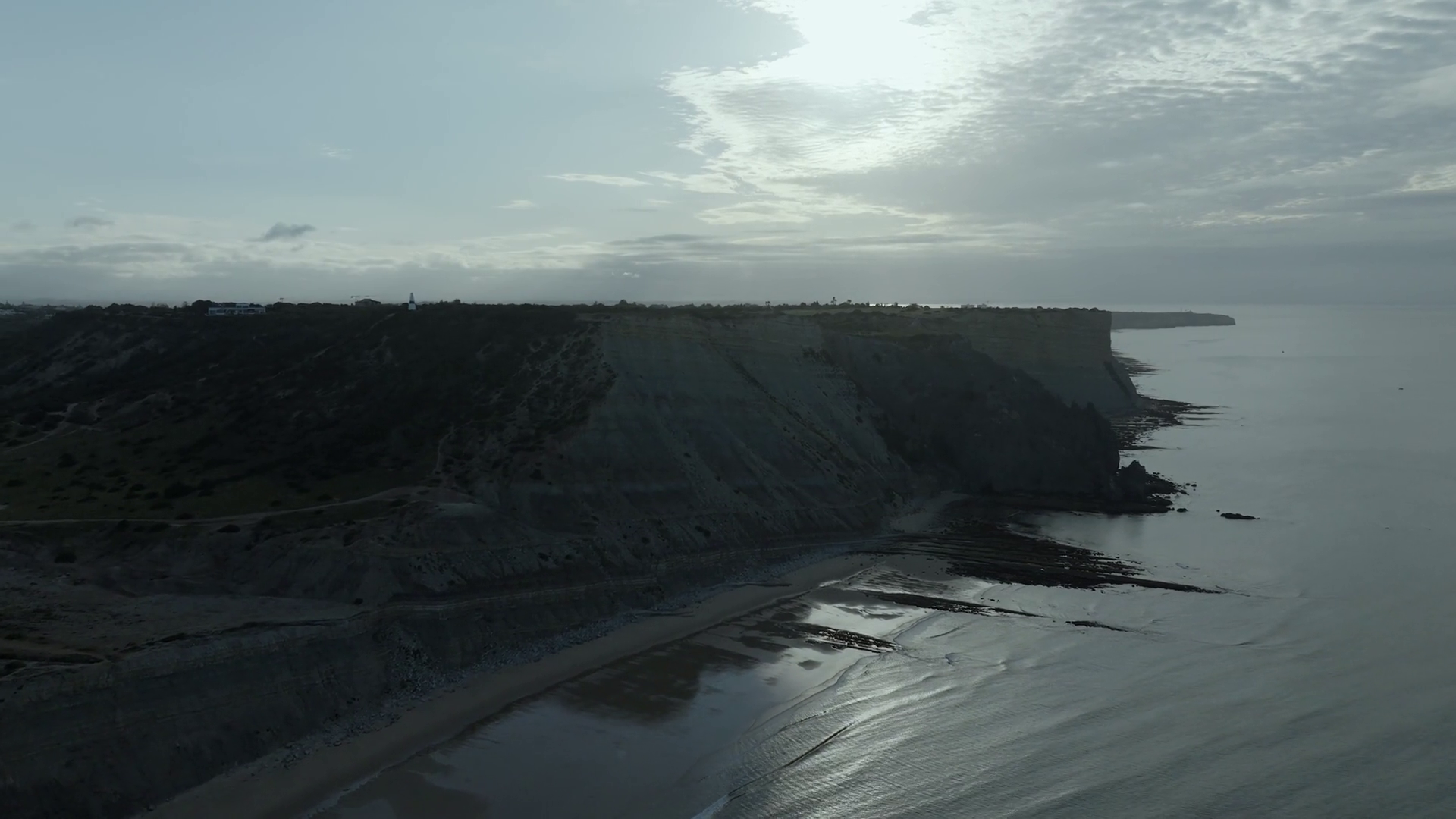 Aerial View Of Serene Coastline With Cliff Praia Da Luz Rocha Negra Algarve Region PortugalÂ