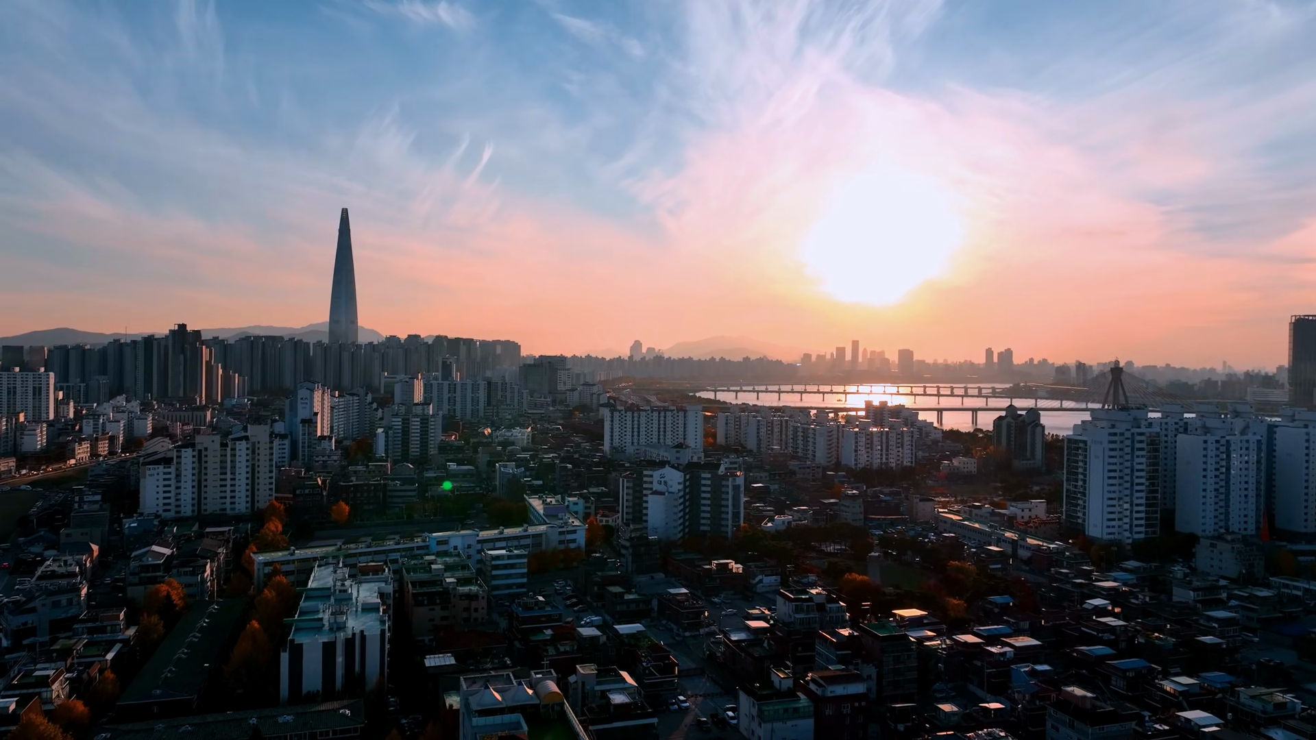 Aerial View Of Teheranro In Gangnam Seoul South Korea SunsetÂ