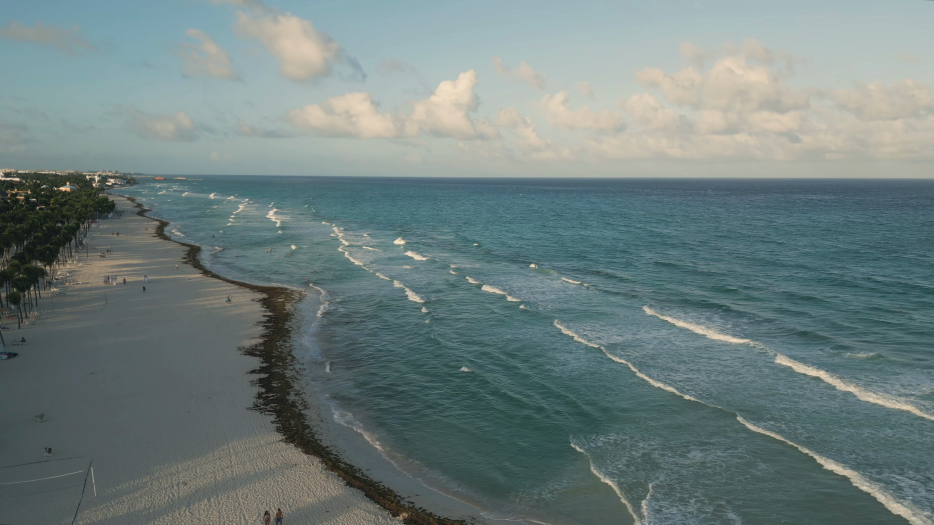 Aerial View Of Tropical Coastline With Beach Ocean And Resorts In Playa Del Carmen Mexico At SunriseÂ