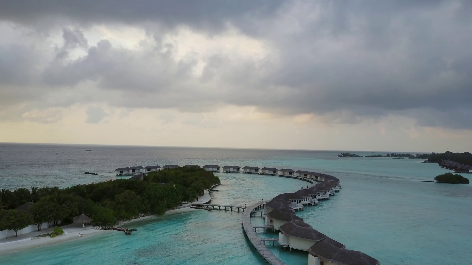 Aerial View Of Tropical Island Resort Hotel With White Sand Palm Trees And Turquoise Indian Ocean On MaldivesÂ