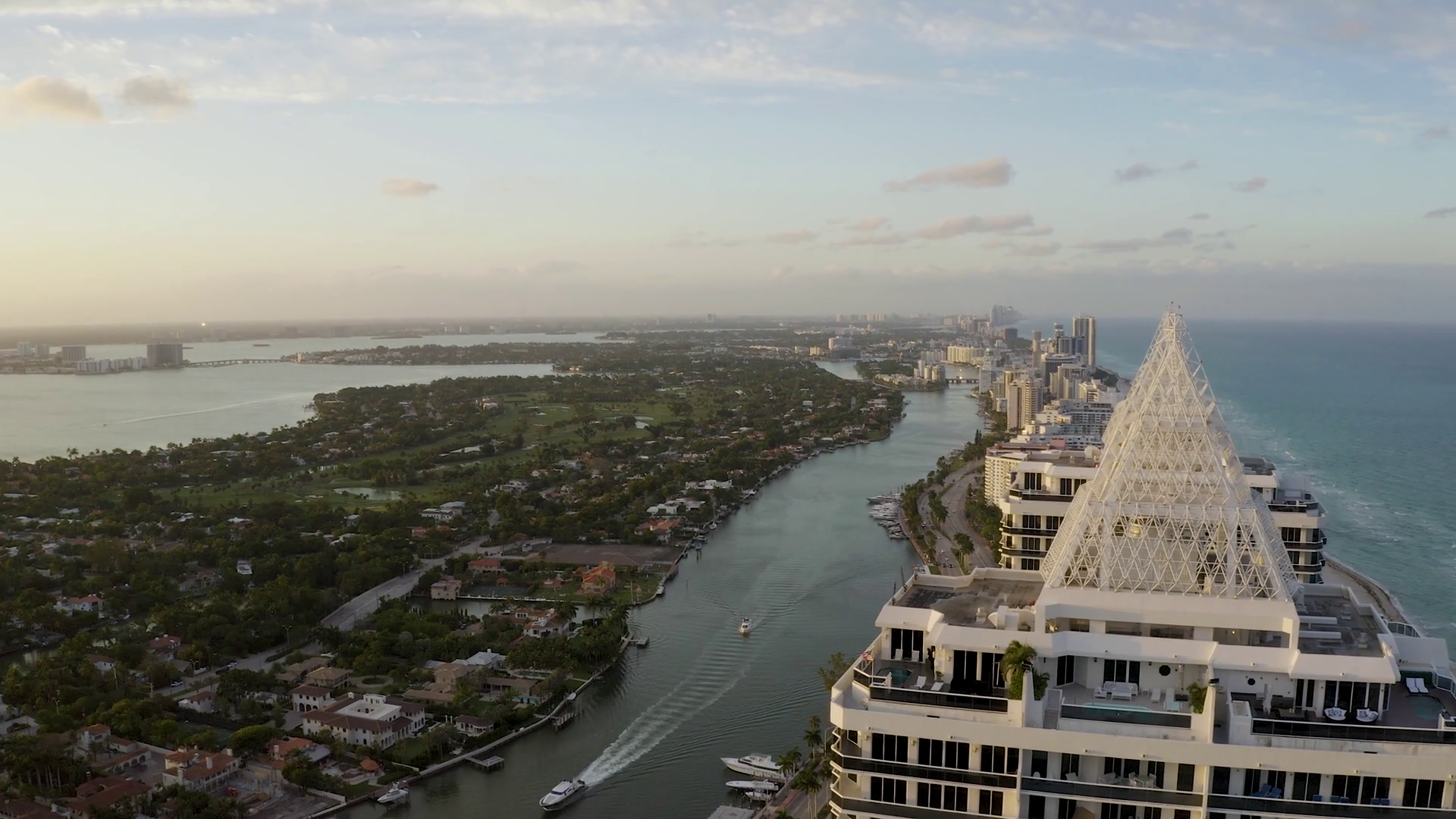 Aerial View Of Waterways Cutting Through Islands Adjacent To Towering Buildings And Boats Creating A Vibrant Contrast Miami Beach Florida United StatesÂ