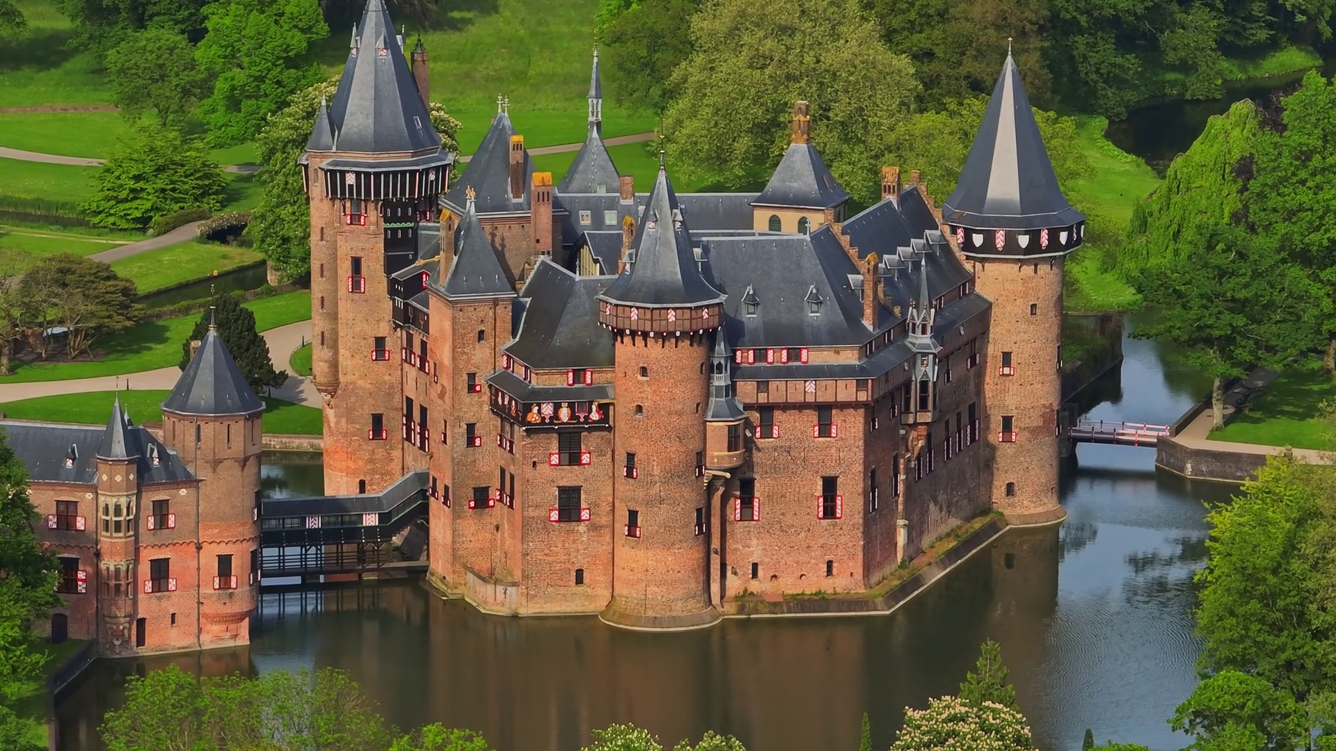 Aerial View Utrecht Netherlands Kasteel De Haar Old Historical Garden At Castle De Haar Netherlands Utrecht On A SunsetÂ