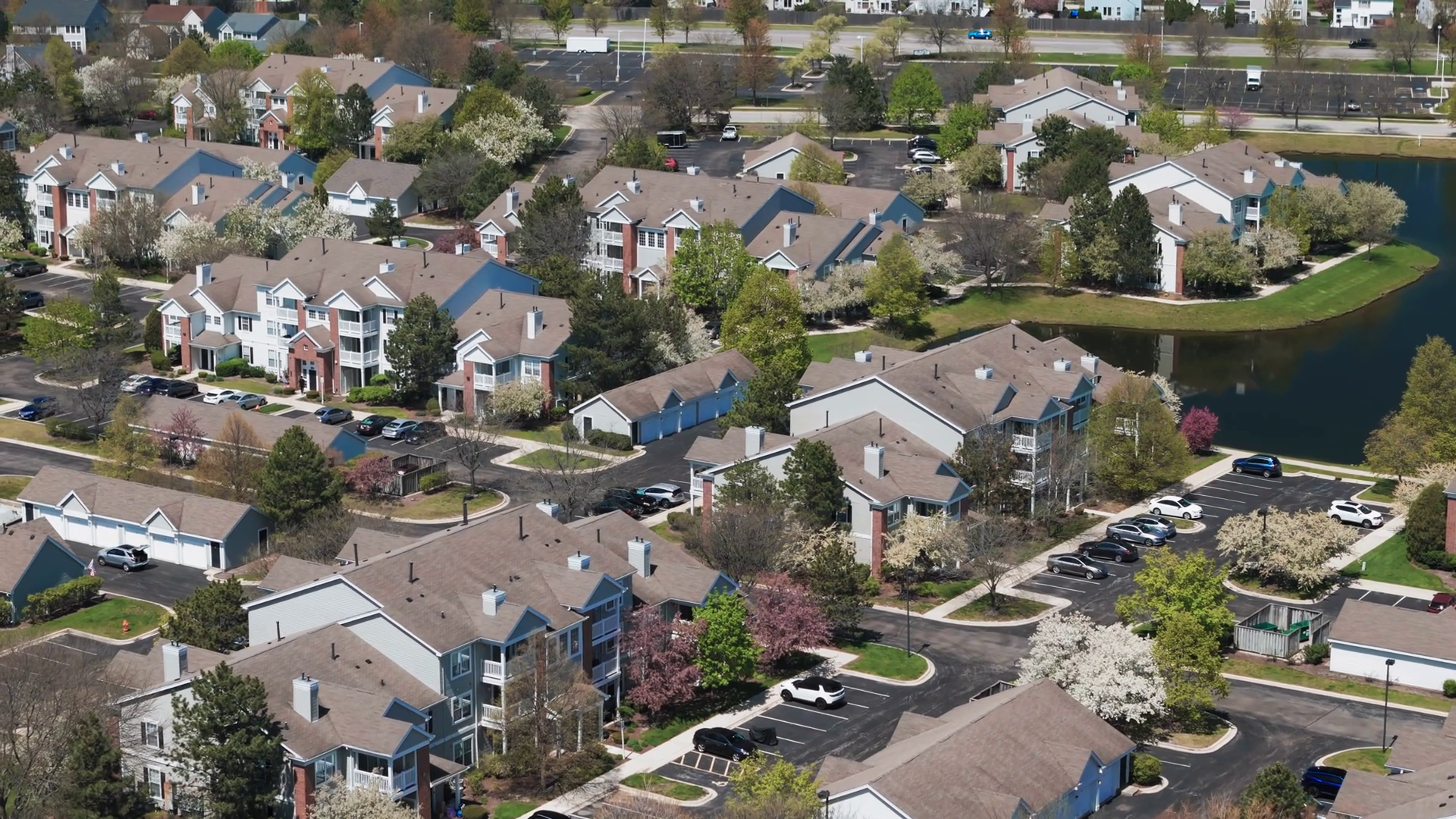 Aerial Wide Shot Of Residential Houses In Suburbs Of City On A Sunny Day Â