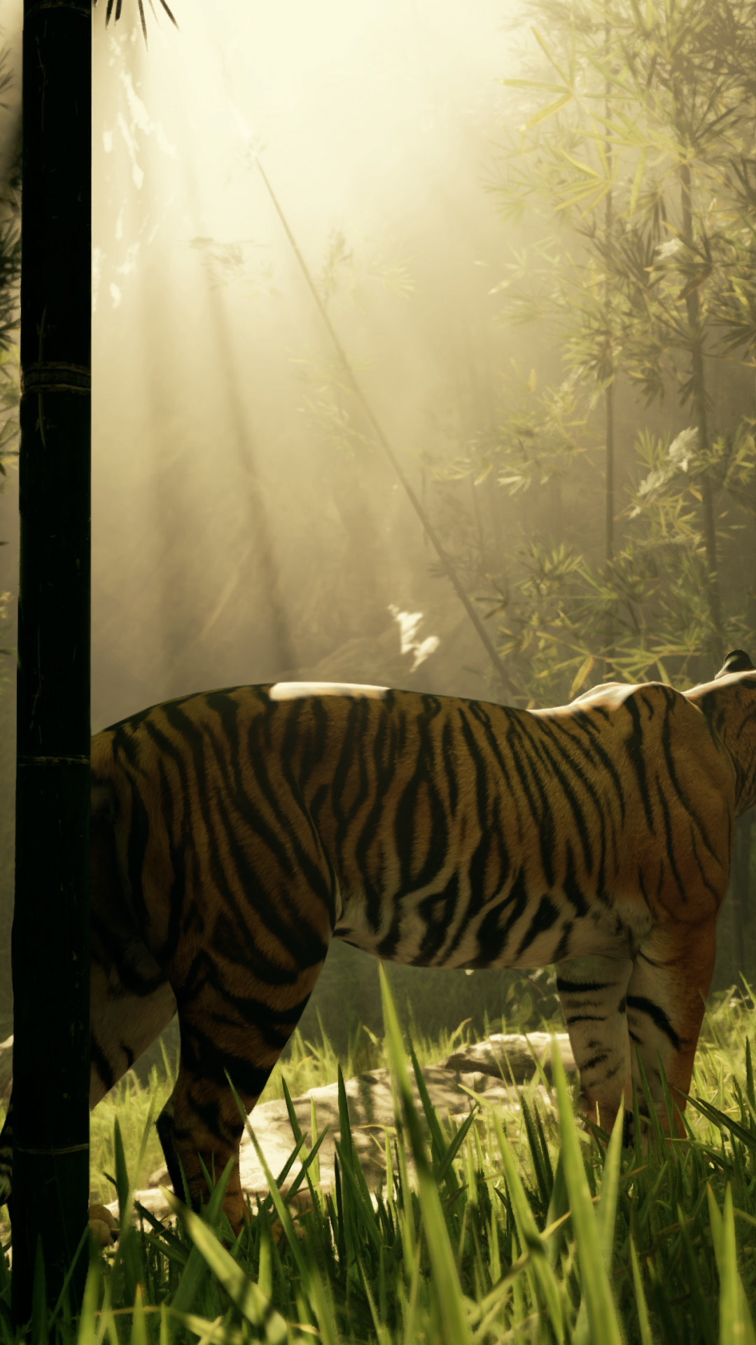 Amidst The Dense Bamboo A Tiger Remains Motionless Searching For Its Next MealÂ