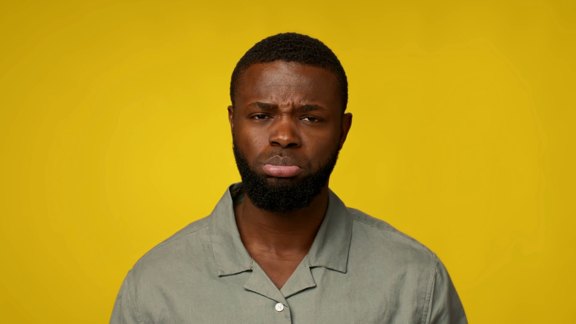 An African American Man Stands Isolated With A Sad Expression He Wears A Casual Outfit And Faces The Camera Directly Set Against A VibrantÂ