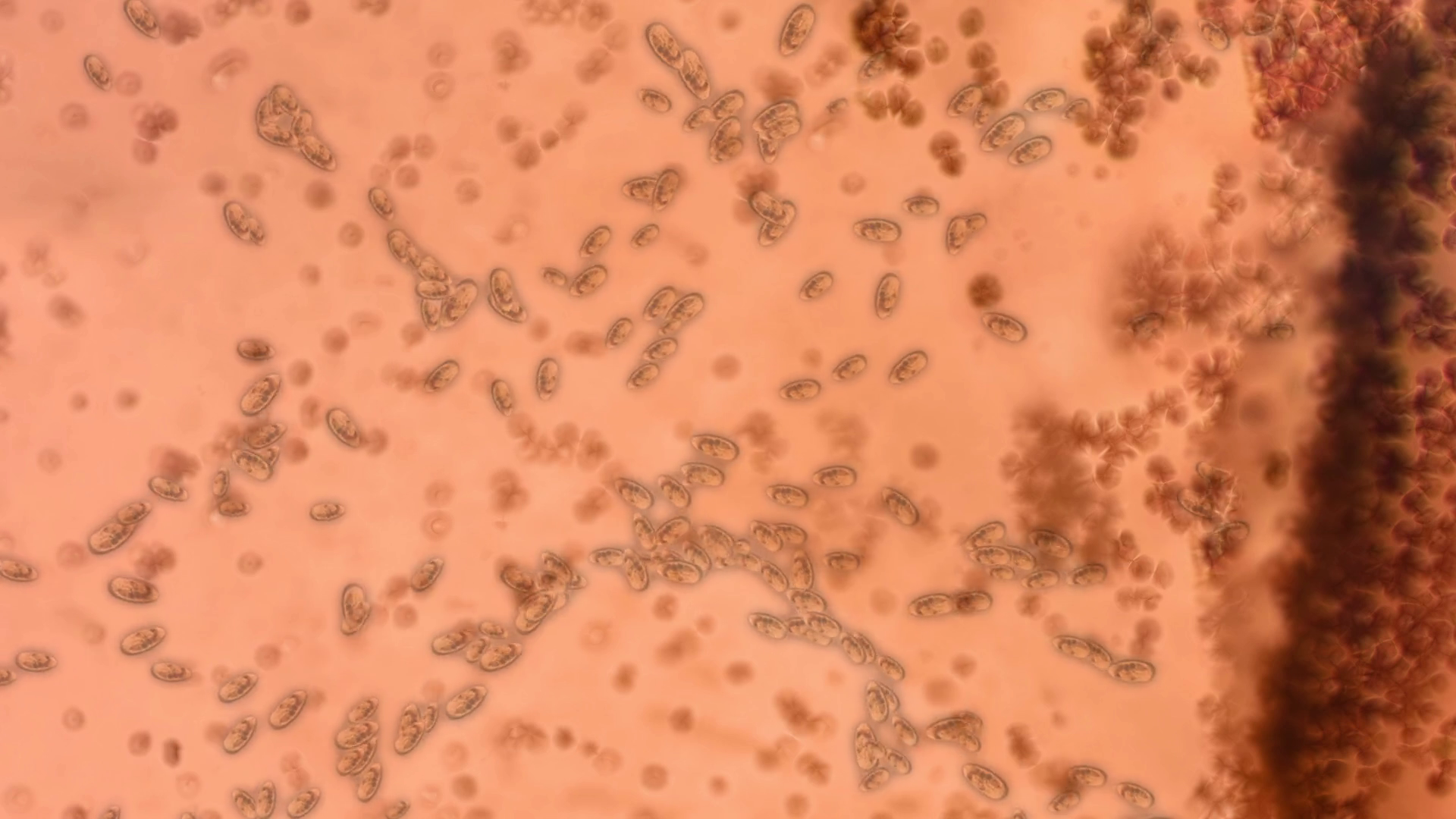 An Animation Imitating A View Through A Microscope With A Cluster Of Microorganisms Scattering A Swimming Away In All Directions