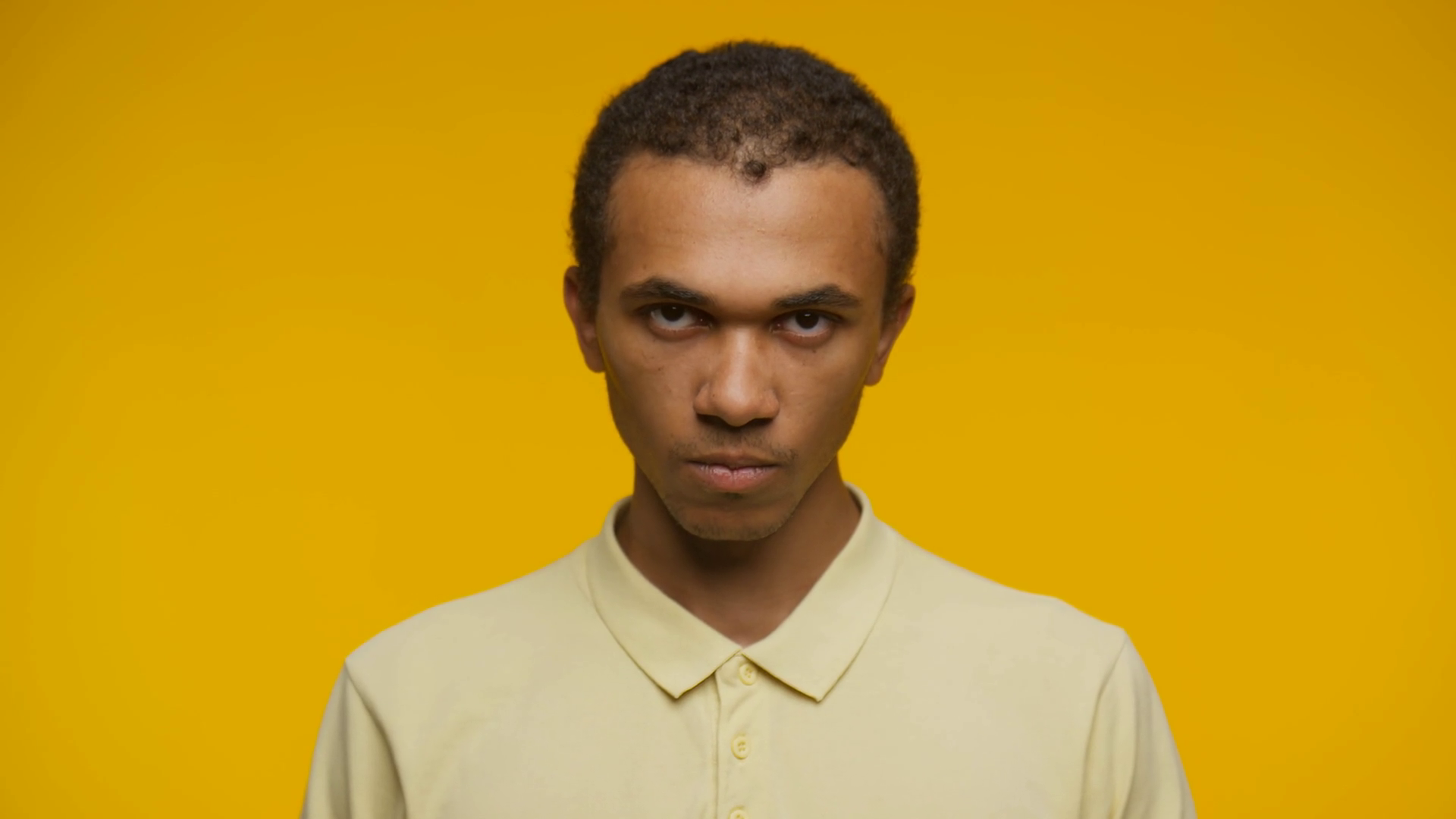 Angry Man Staring Directly At Camera On Yellow BackgroundÂ