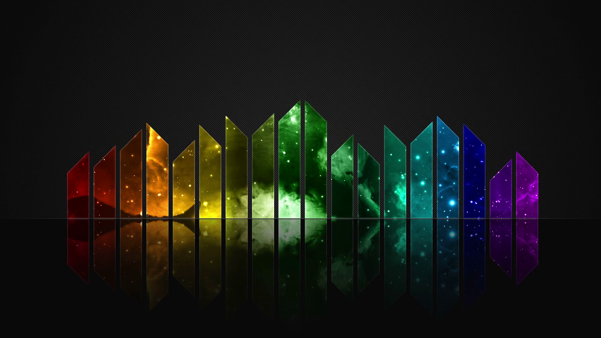 Animated Colorful Cosmic Glass Audio Visualization Bars Version 2 Crystal Sound Amplitude Volume Equalizer With View Of Space Dci 4k Uhd 4096 X 2304 Seamless Loop Motion Background 7 Colors Of Light Spectrum Rainbow