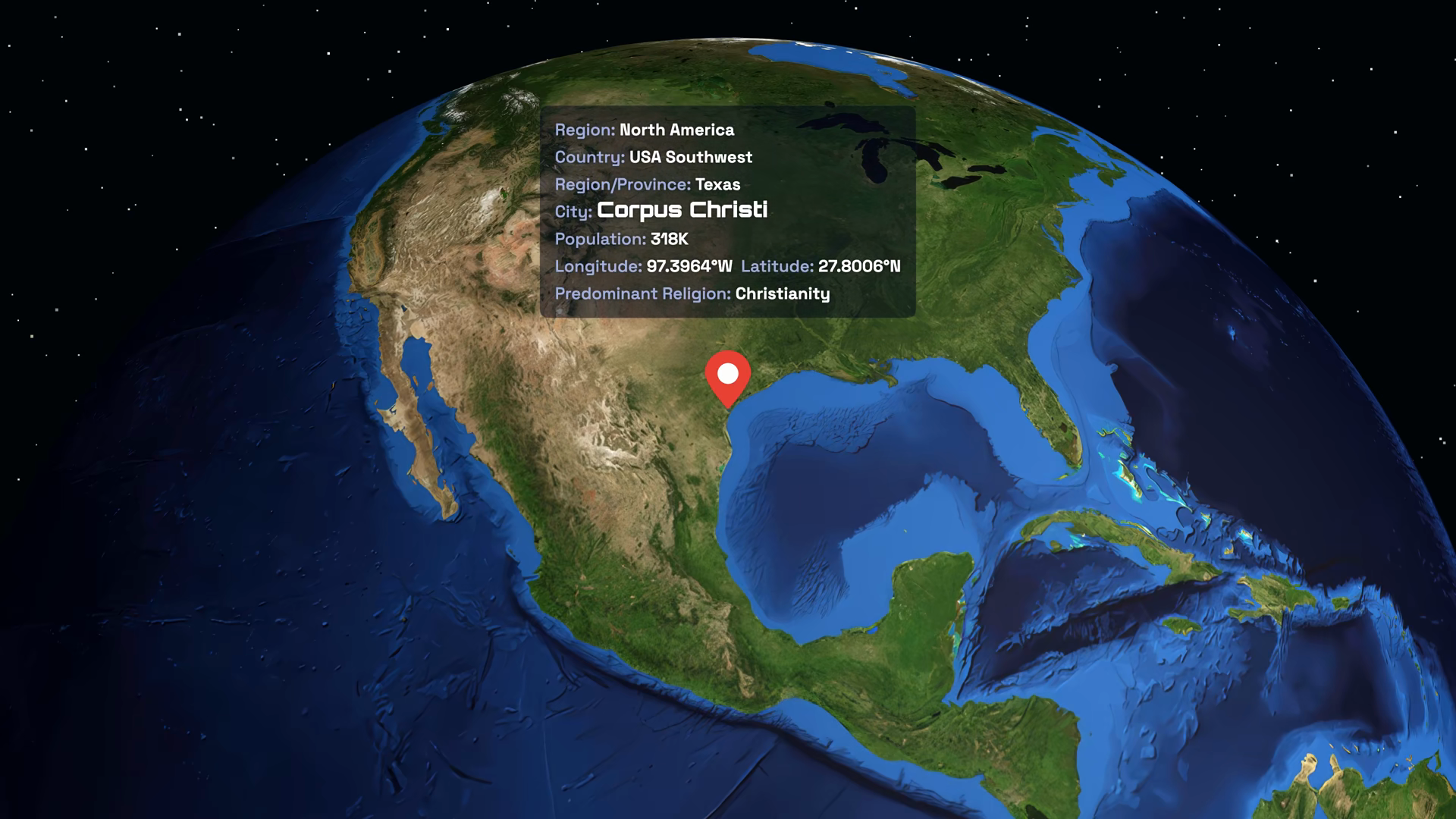 Animated Globe Zooming Into Corpus Christi Texas With Data Overlay