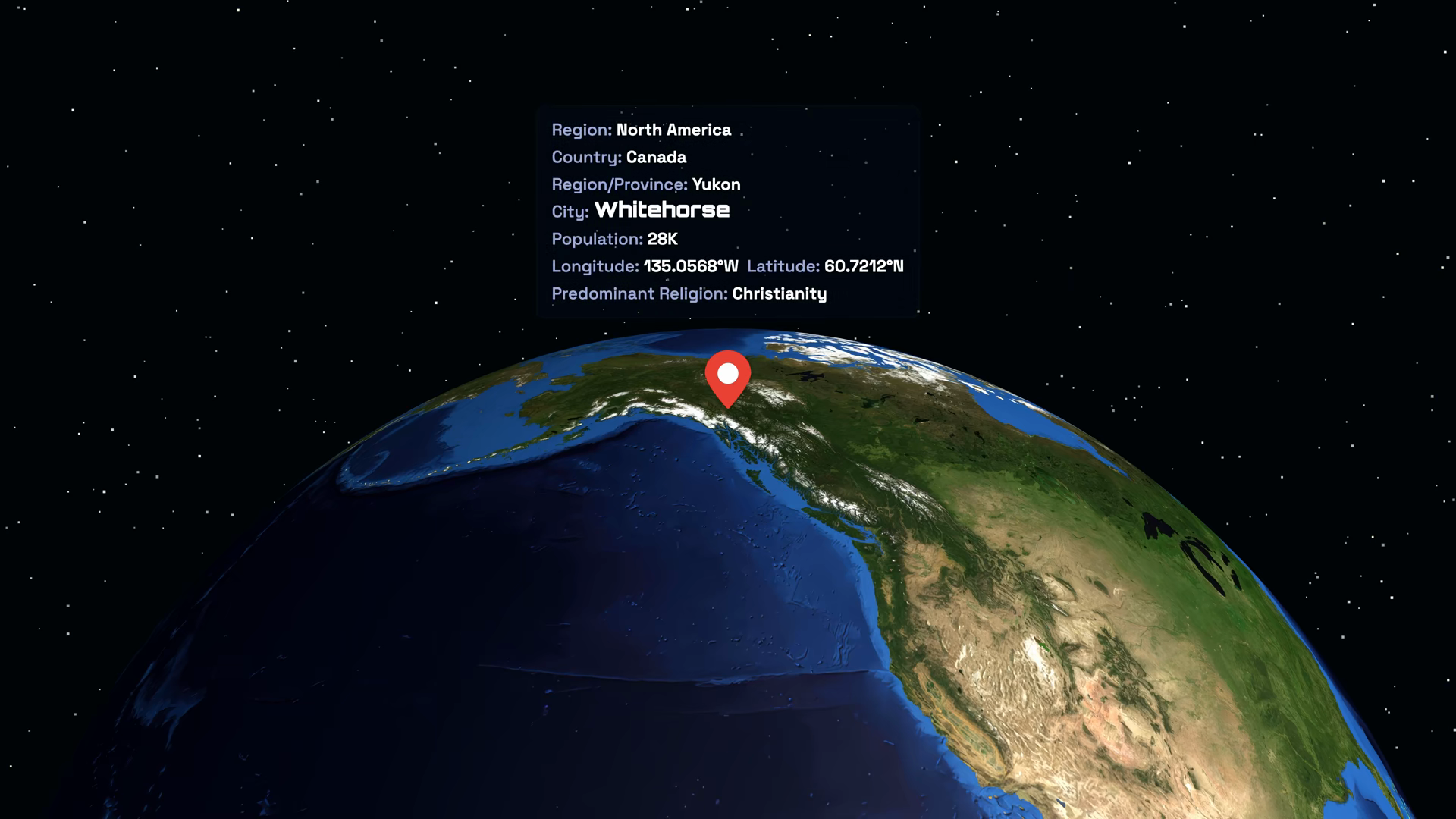 Animated Globe Zooming Into Whitehorse Yukon Canada With Data Overlay