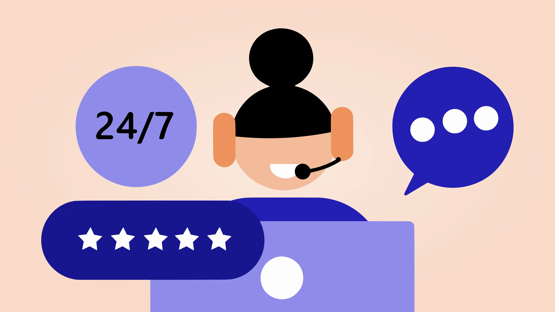 Animation Of A Woman Wearing A Headset A 24hour Symbol And A Chat Icon Depicting Customer Service Or Support ServicesÂ