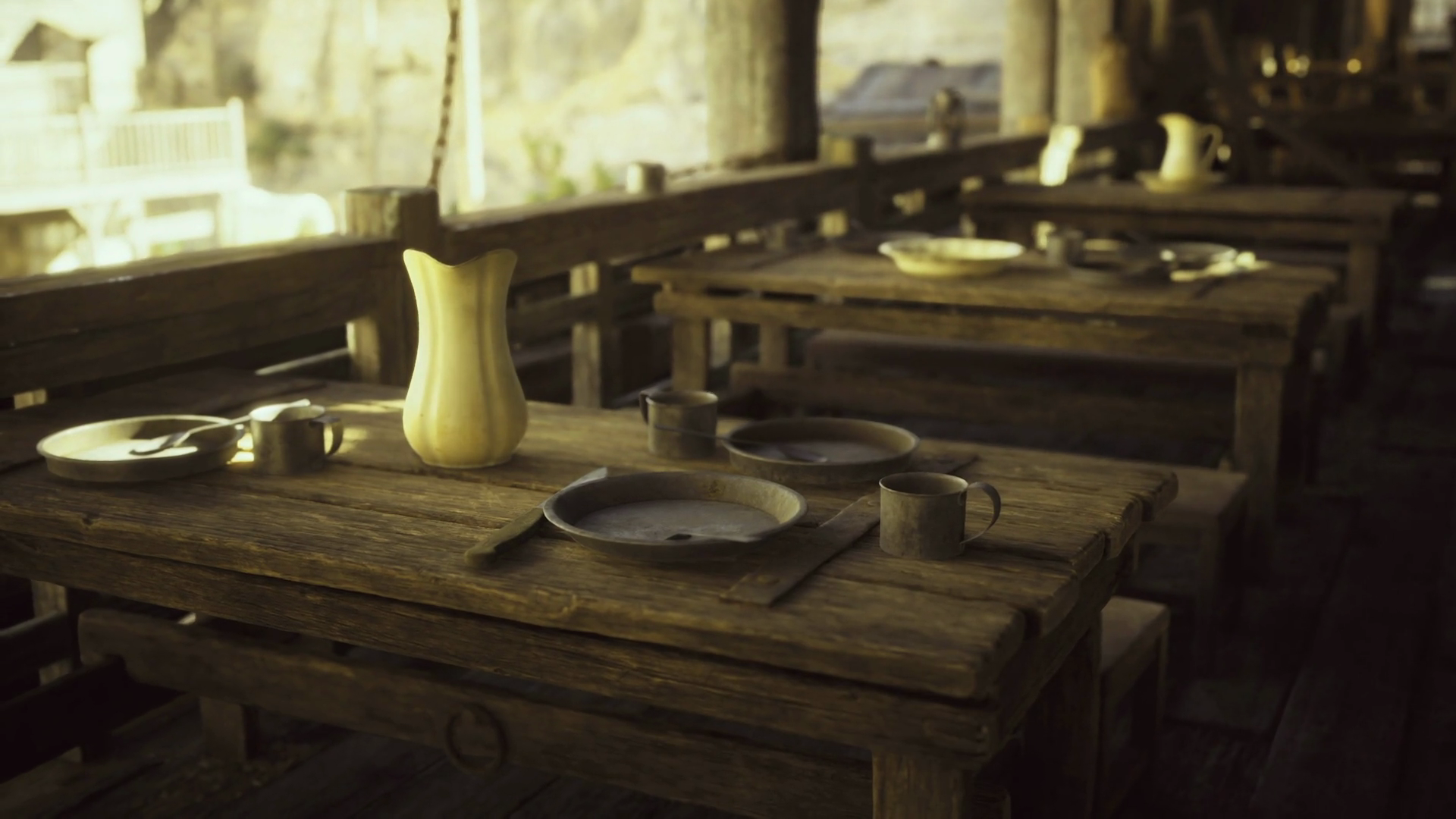 Atmosphere Of Tension And Anticipation Fills Weathered Western Saloon Interior
