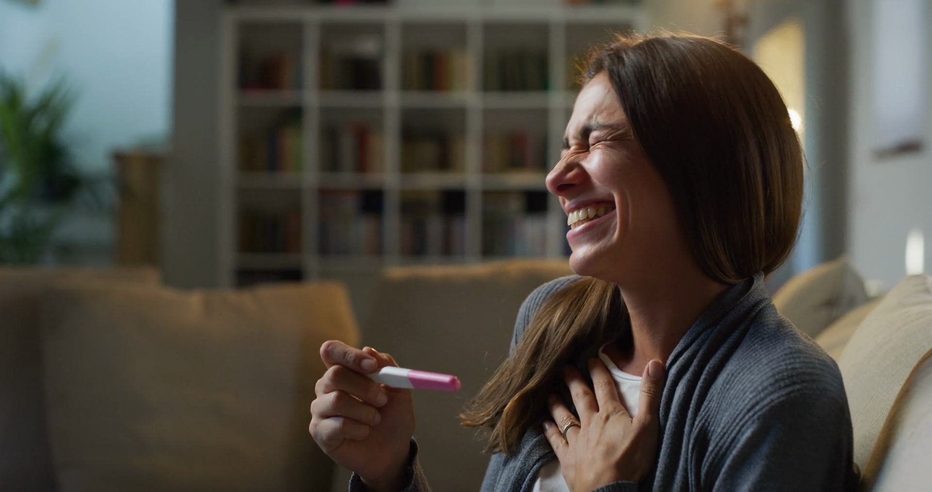 Authentic Shot Of Young Woman Is Surprised And Crying Emotioned Of Happiness And Joy For The Future Birth Of Her Child After Reading Positive Result Of Pregnancy Test Stick At HomeÂ