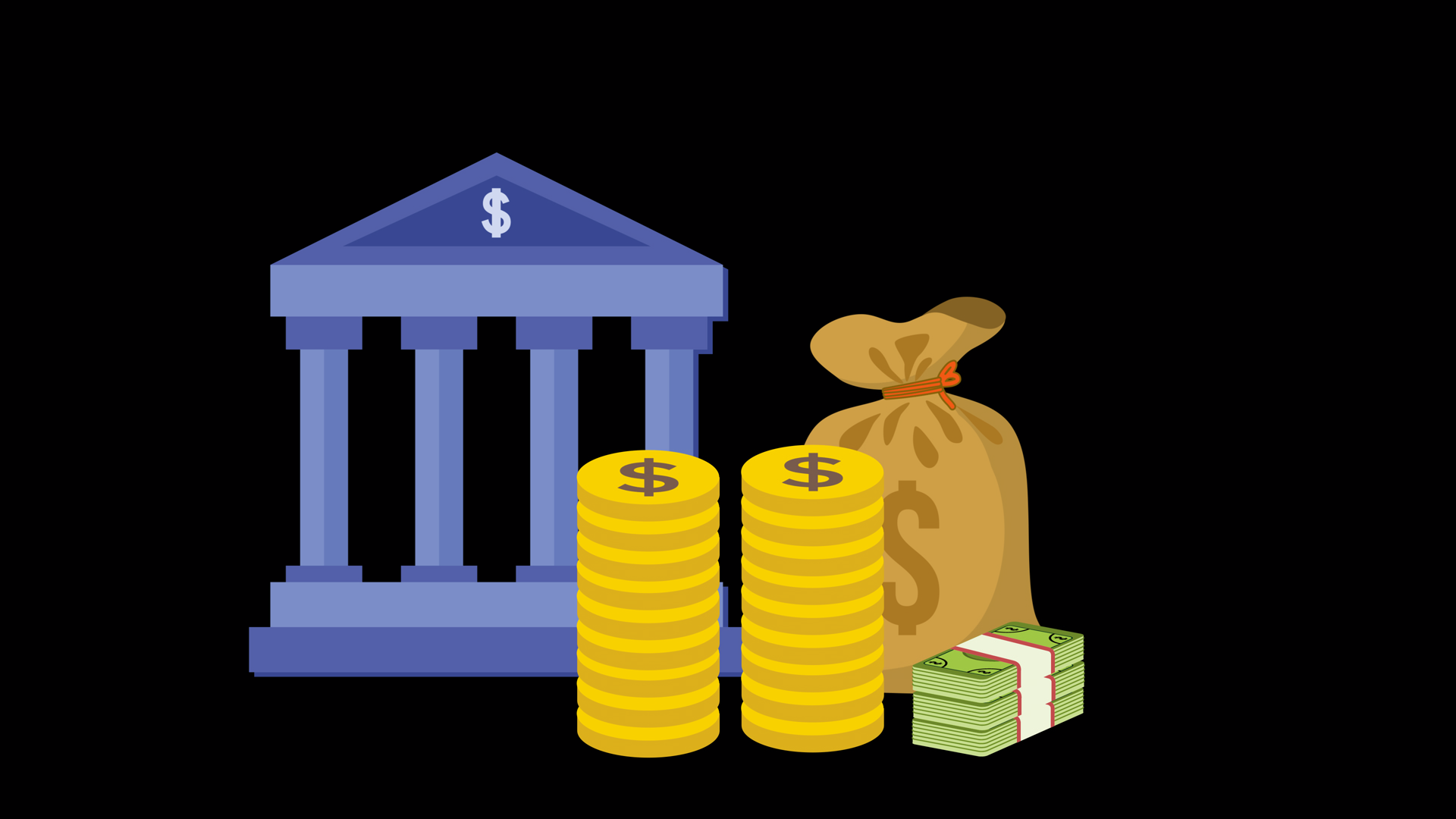 Banking And Savings Animation With Coins Cash And Money Bag Motion Loop With Alpha ChannelÂ