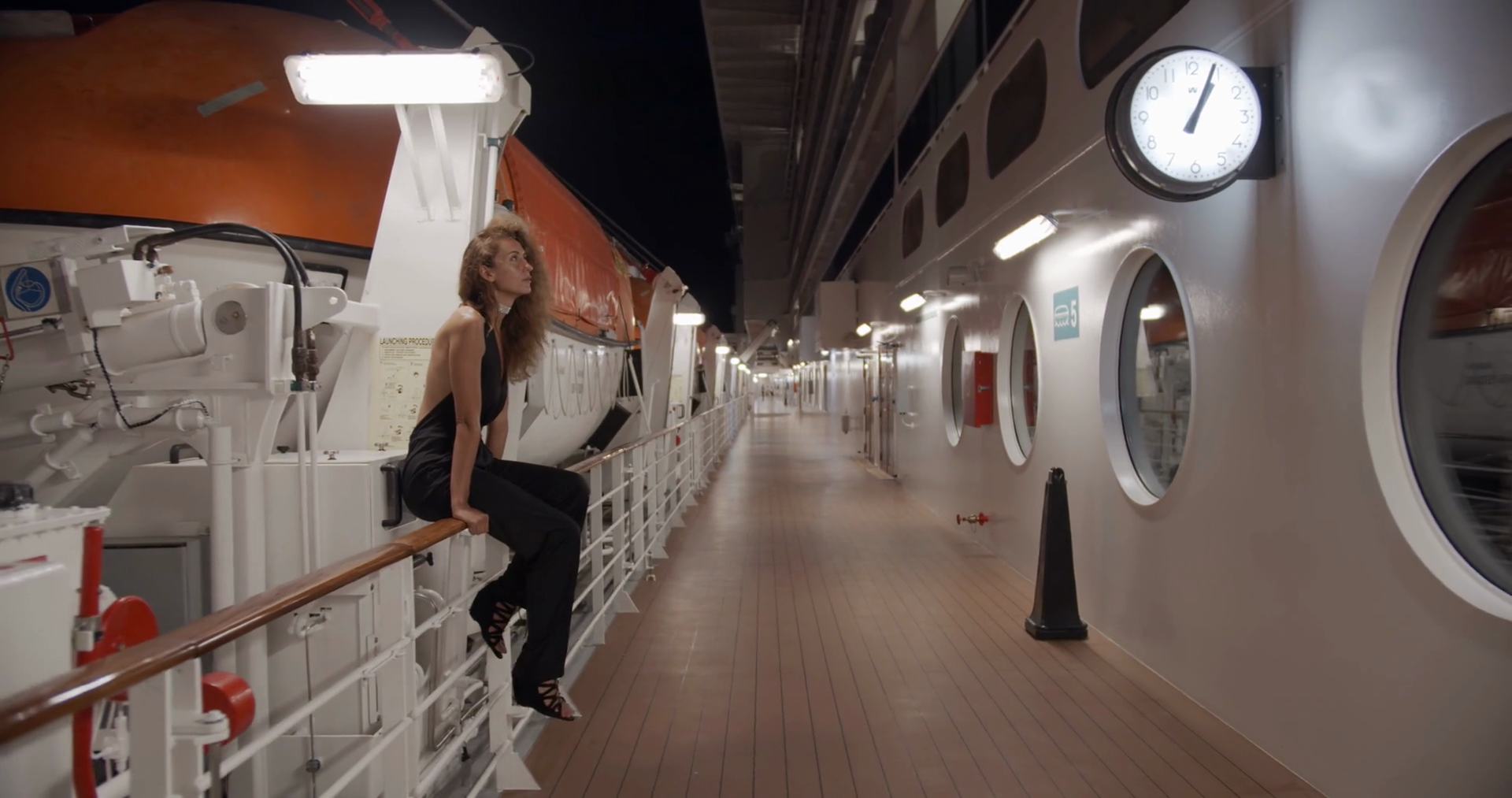 Barcelona Spain October 20 2019 Elegant Person In Evening Attire Enjoys The View On A Cruise ShipÂ