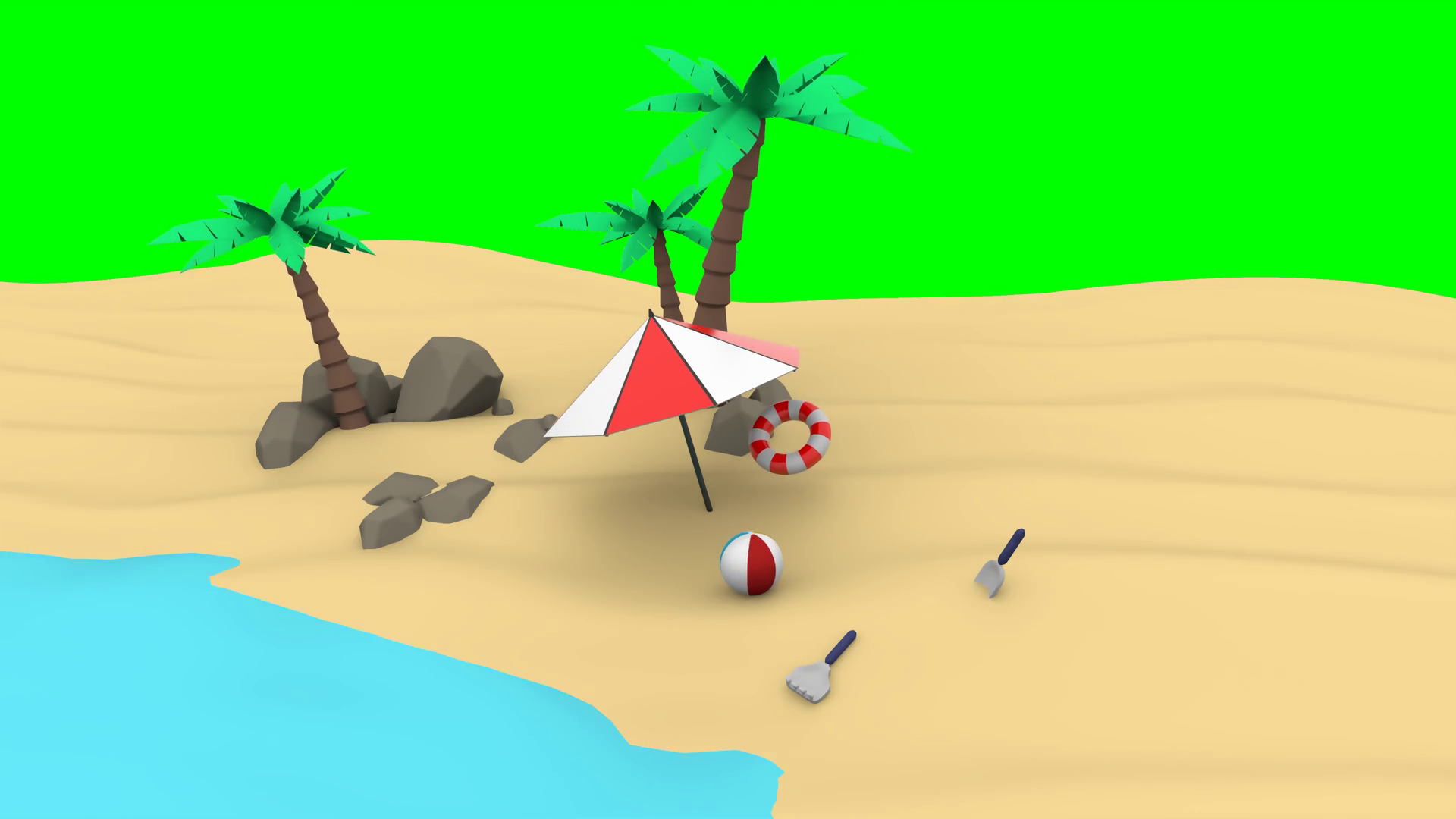 Beach Scene With Palm Tree Umbrella And Life Preserver 3d Summer AnimationÂ