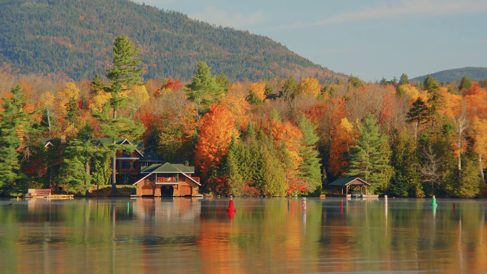 Beautiful House On Lake Placid With Autumn Trees In The BackgroundÂ