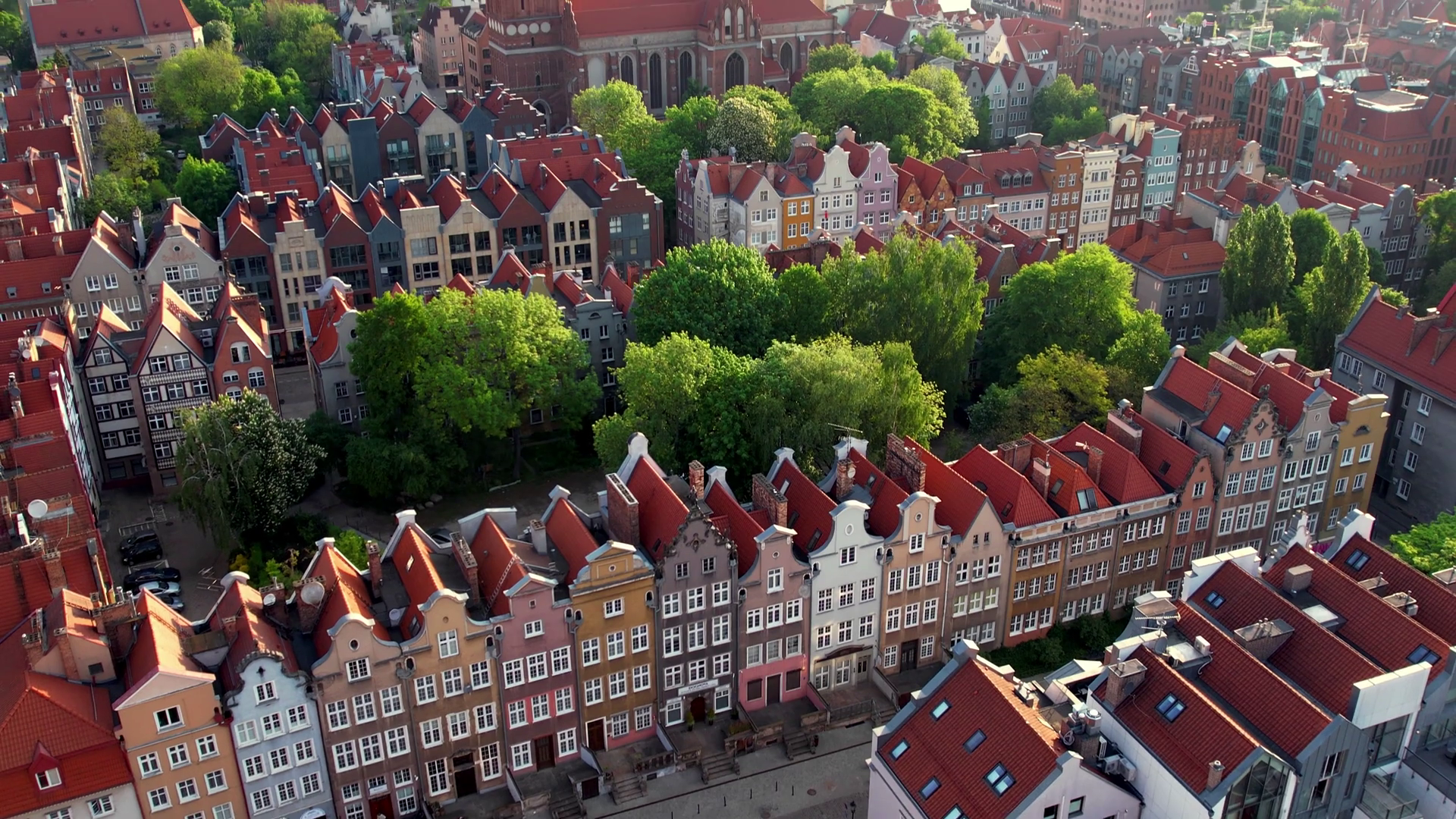 Beautiful Panoramic Architecture Of Old Town In Gdansk Poland At Sunrise Aerial View Drone Pov Landscape Cityscape City From Above SmallÂ
