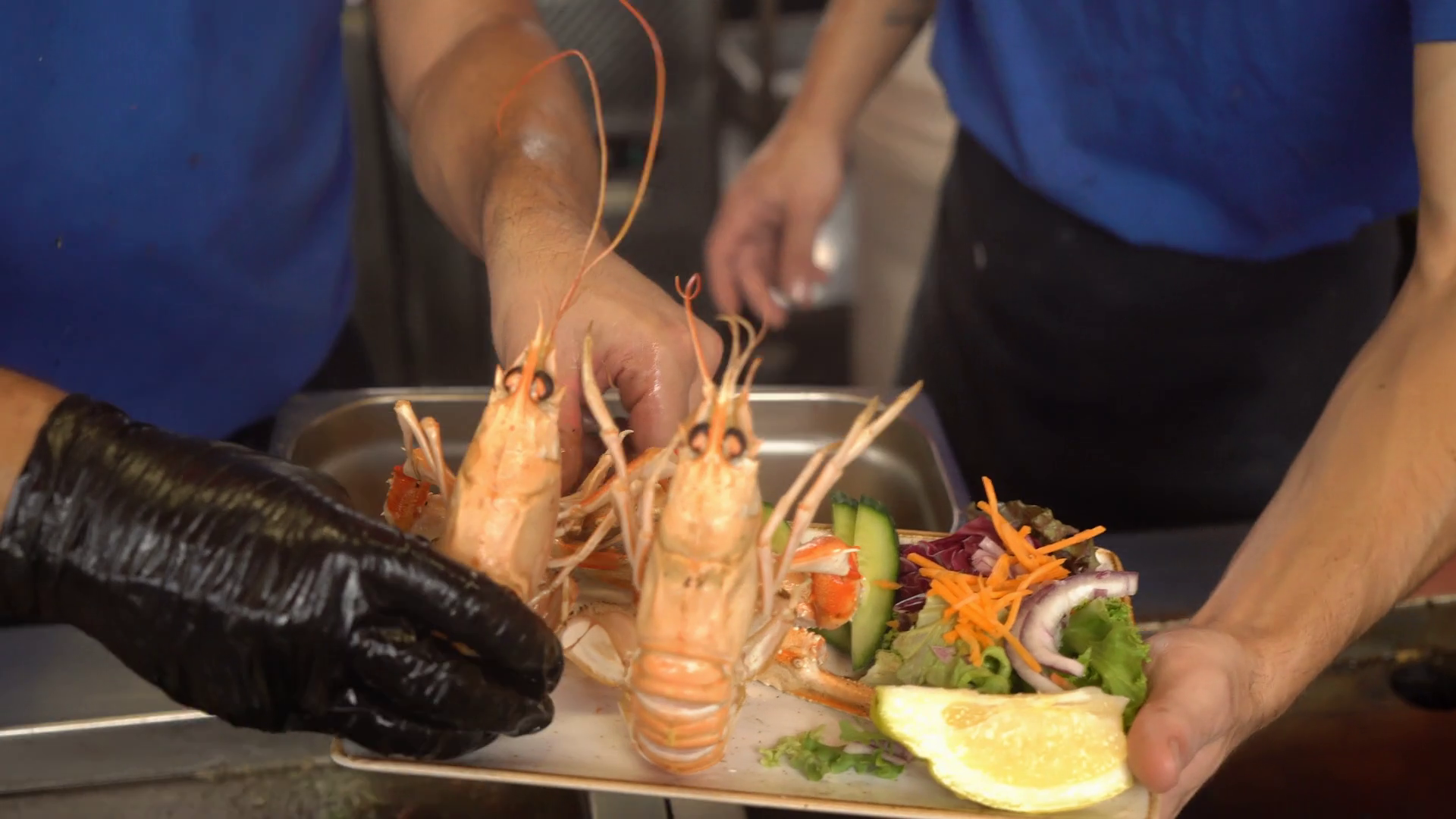 Bergen Norway Jun 23 2023 Chef Cooking Norway Lobster Or Dublin Bay Prawns Or Langoustine Or Scampi At Bergen Fish Market Located AtÂ