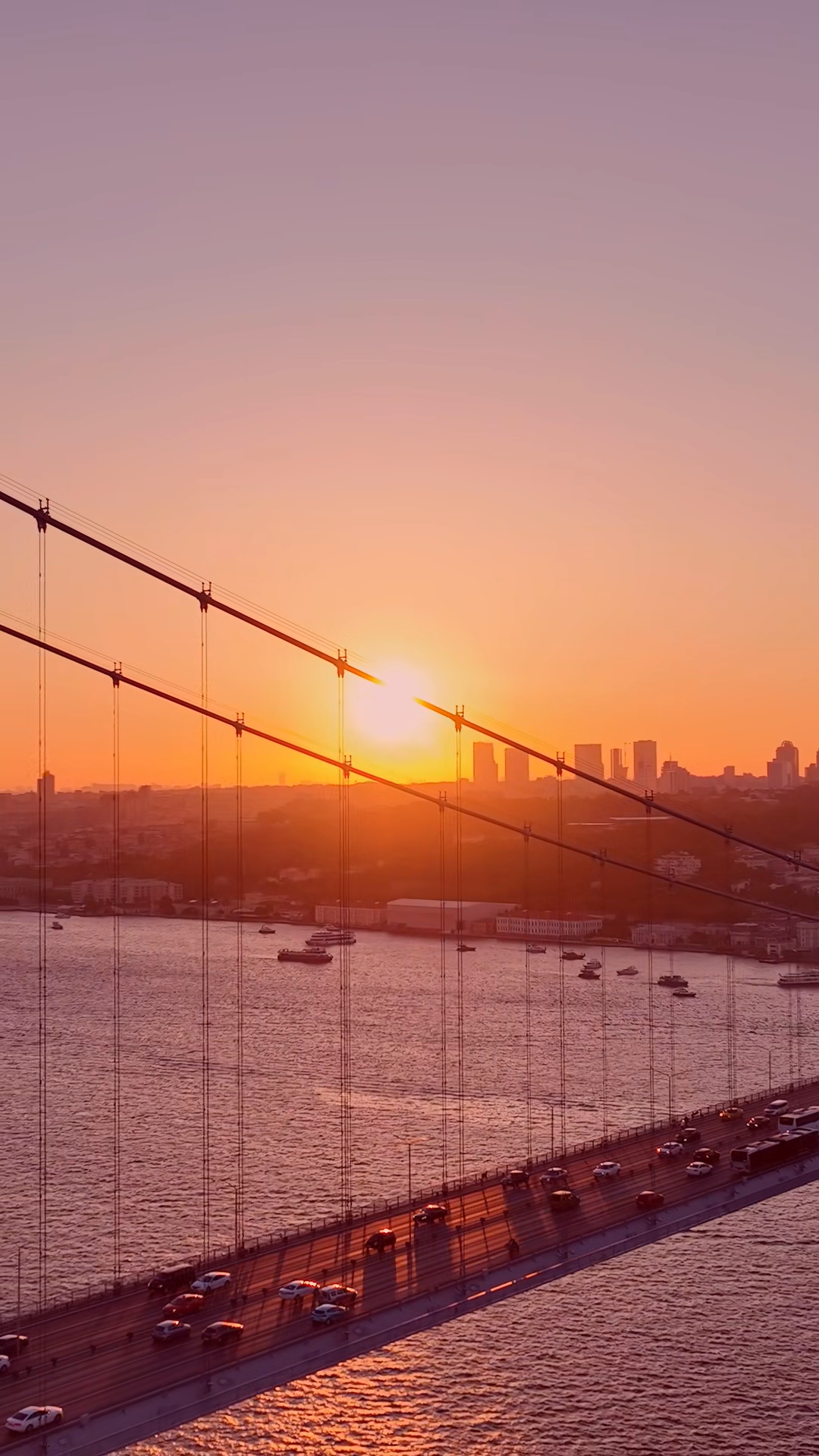 Breathtaking Aerial Vertical View Of Istanbuls Bosphorus Bridge And City Skyline At Golden SunsetÂ