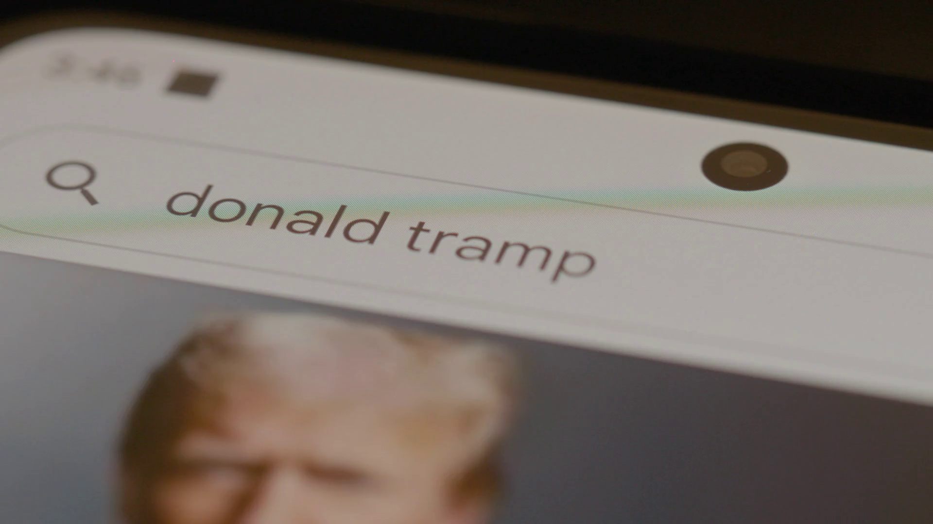 Bucharest Romania 01 December 2024 Searching Donald Trump On Google Information From The Internet Computer Display Macro ShotÂ
