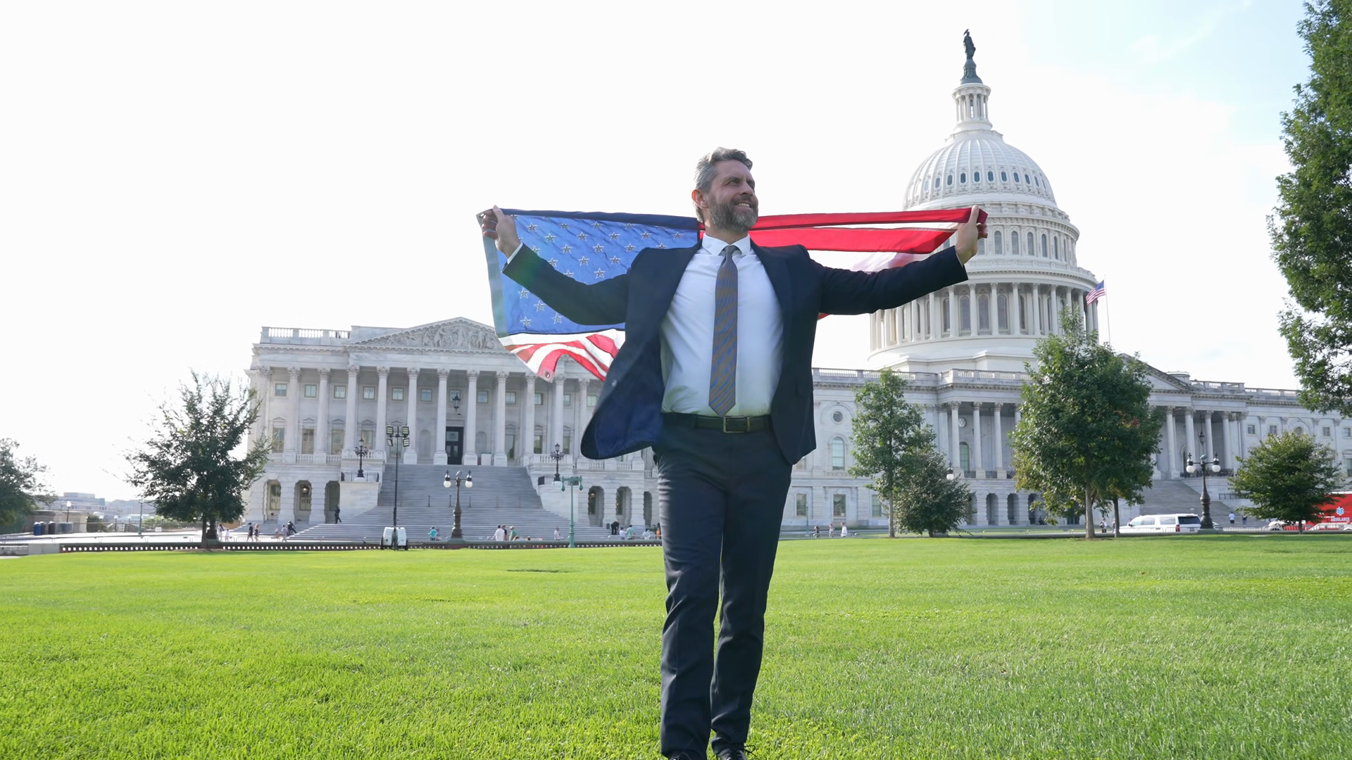 Businessman At Us Capitol Businessman In Washington Dc Man With American Flag Politician On Independence Day Successful Career In UsaÂ