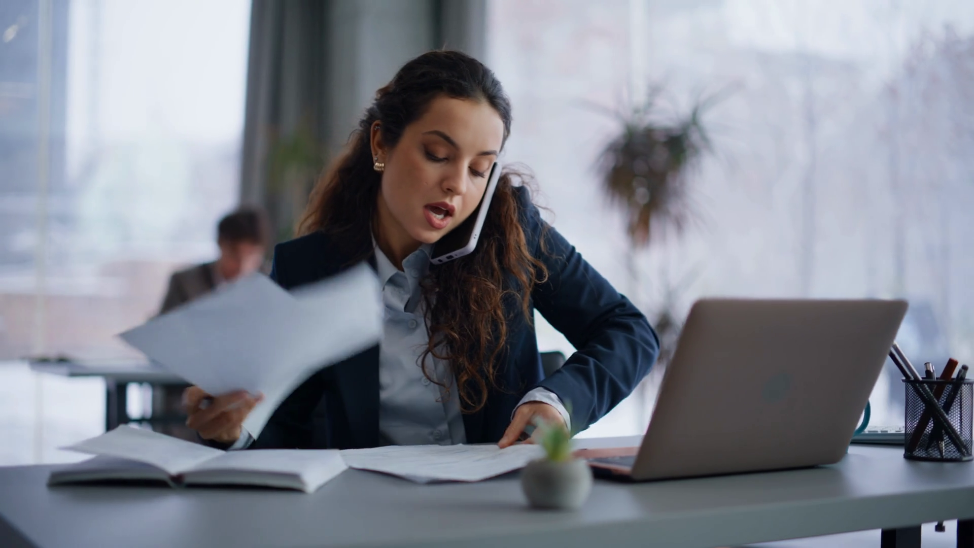 Businesswoman Complaining Cellphone Call Sitting At Laptop Workplace Closeup Stressed Executive Quarrelling Smartphone ConversationÂ
