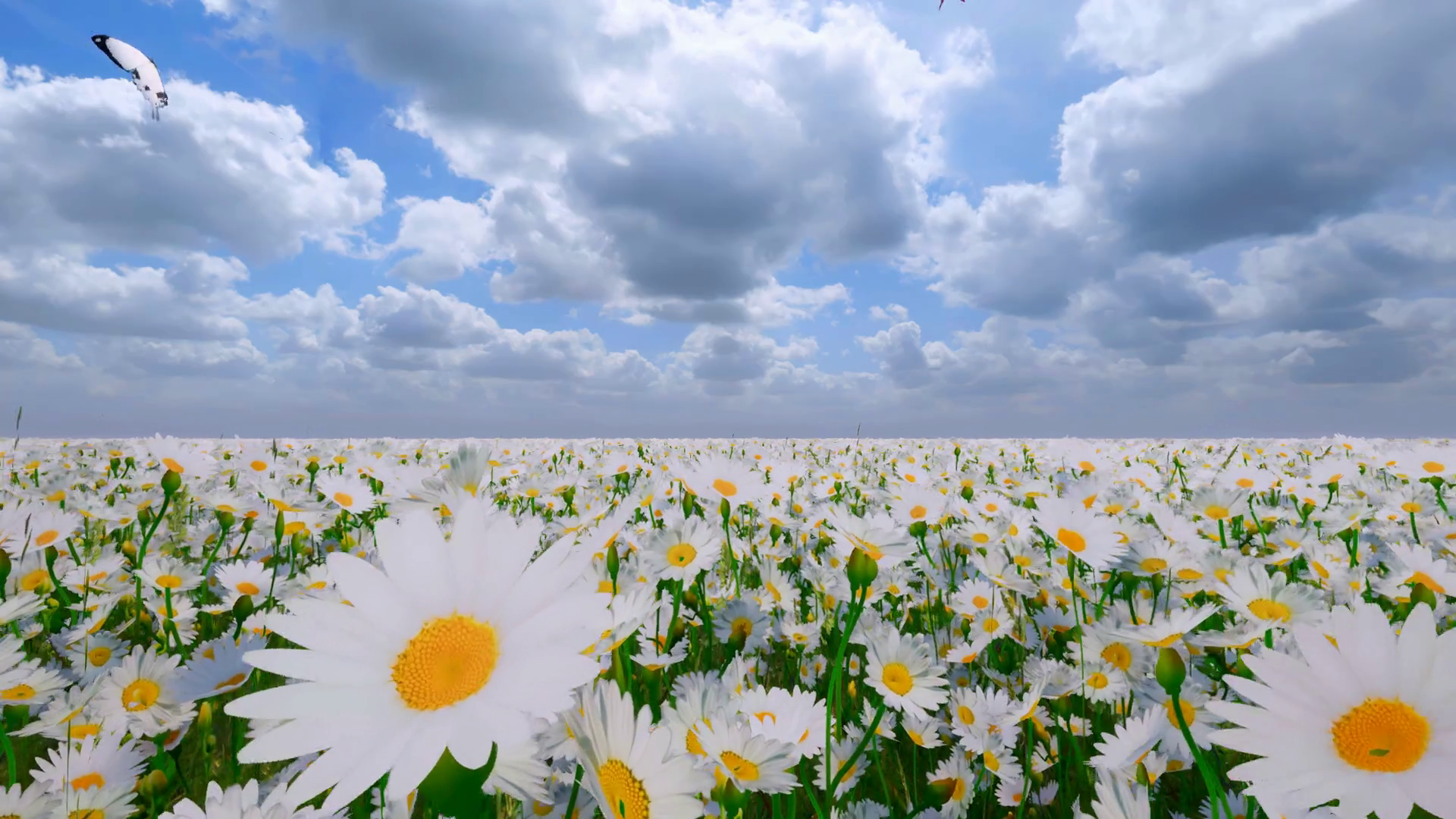 Butterflies In A Field Of Daisies On A Summer Day