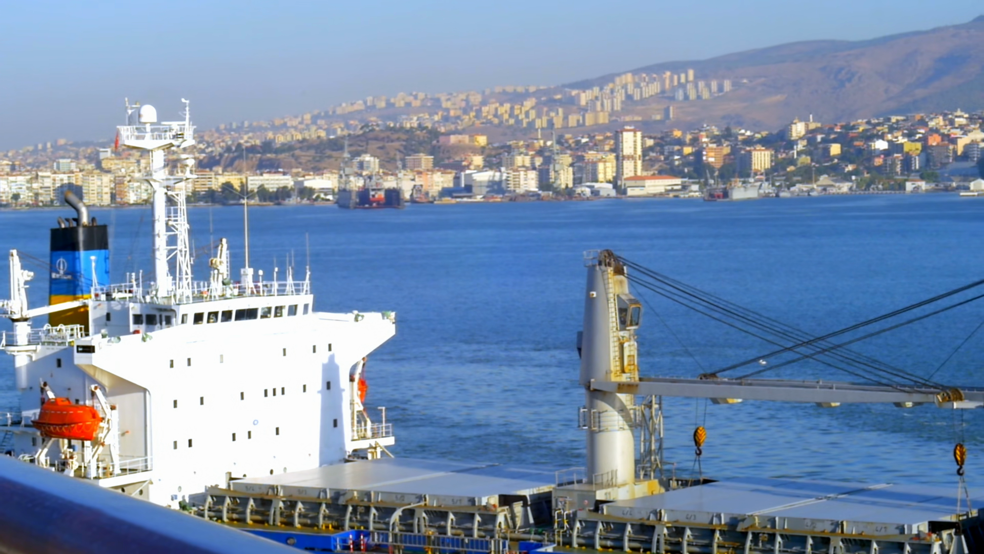 Cargo Ship Passing Turkish Coast With City ViewÂ