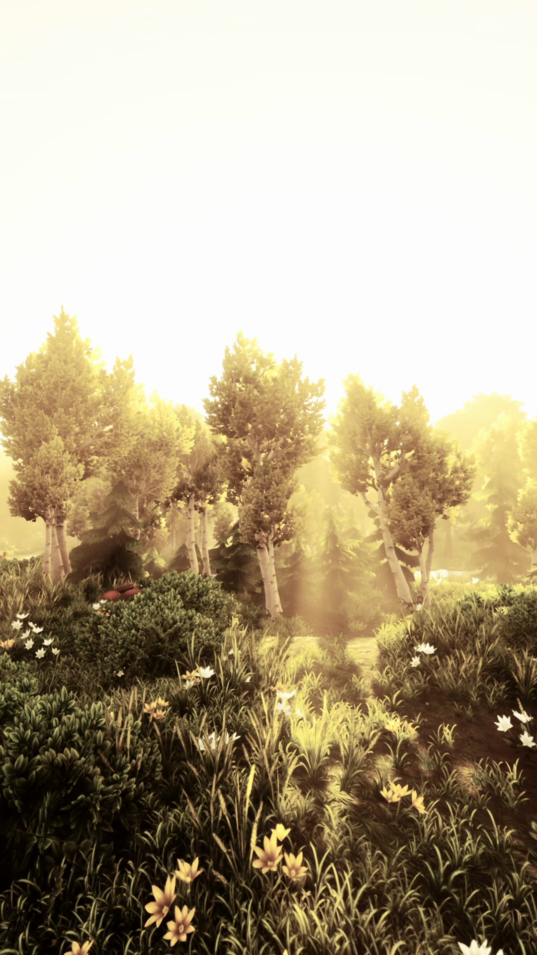 Cartoon Wooded Forest Trees Backlit By Golden SunlightÂ
