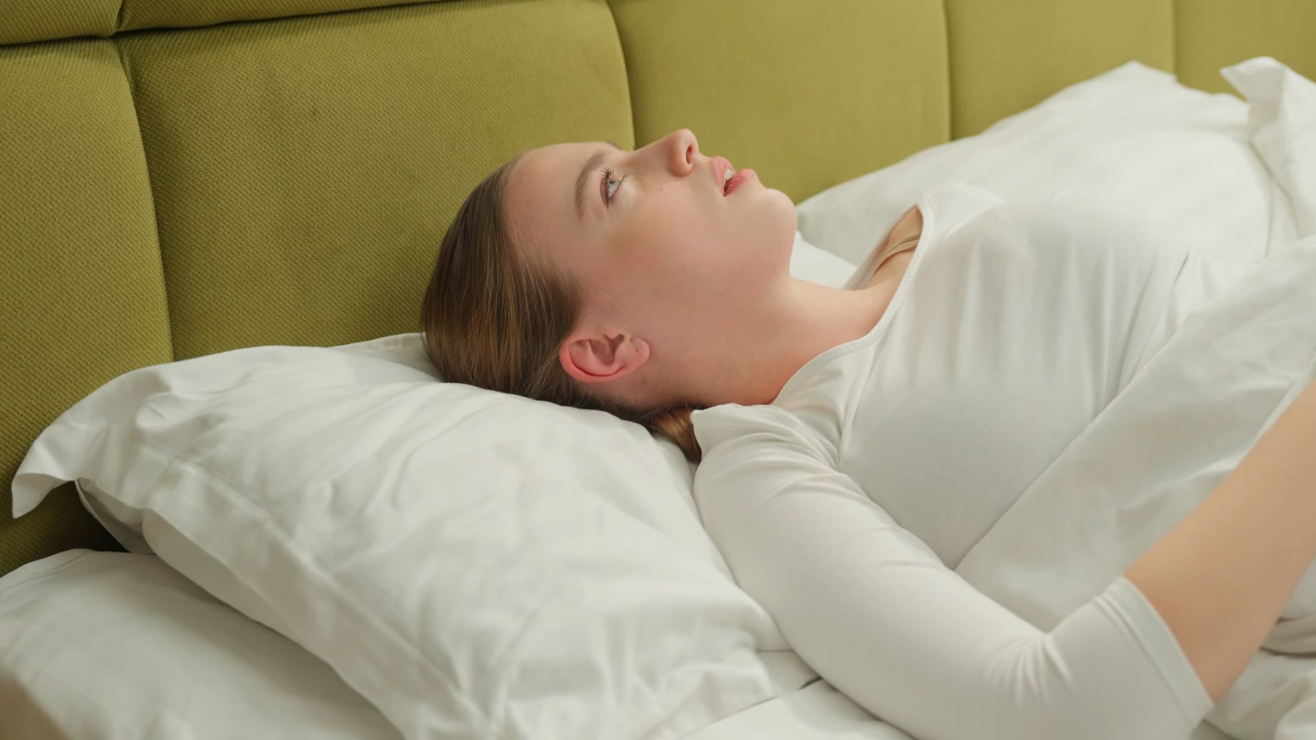 Caucasian Woman Awaking Irritated In Morning Lying In Bed Insomnia Covering With Blanket Girl Tired Exhausted Female Annoyed Loud Neighbour