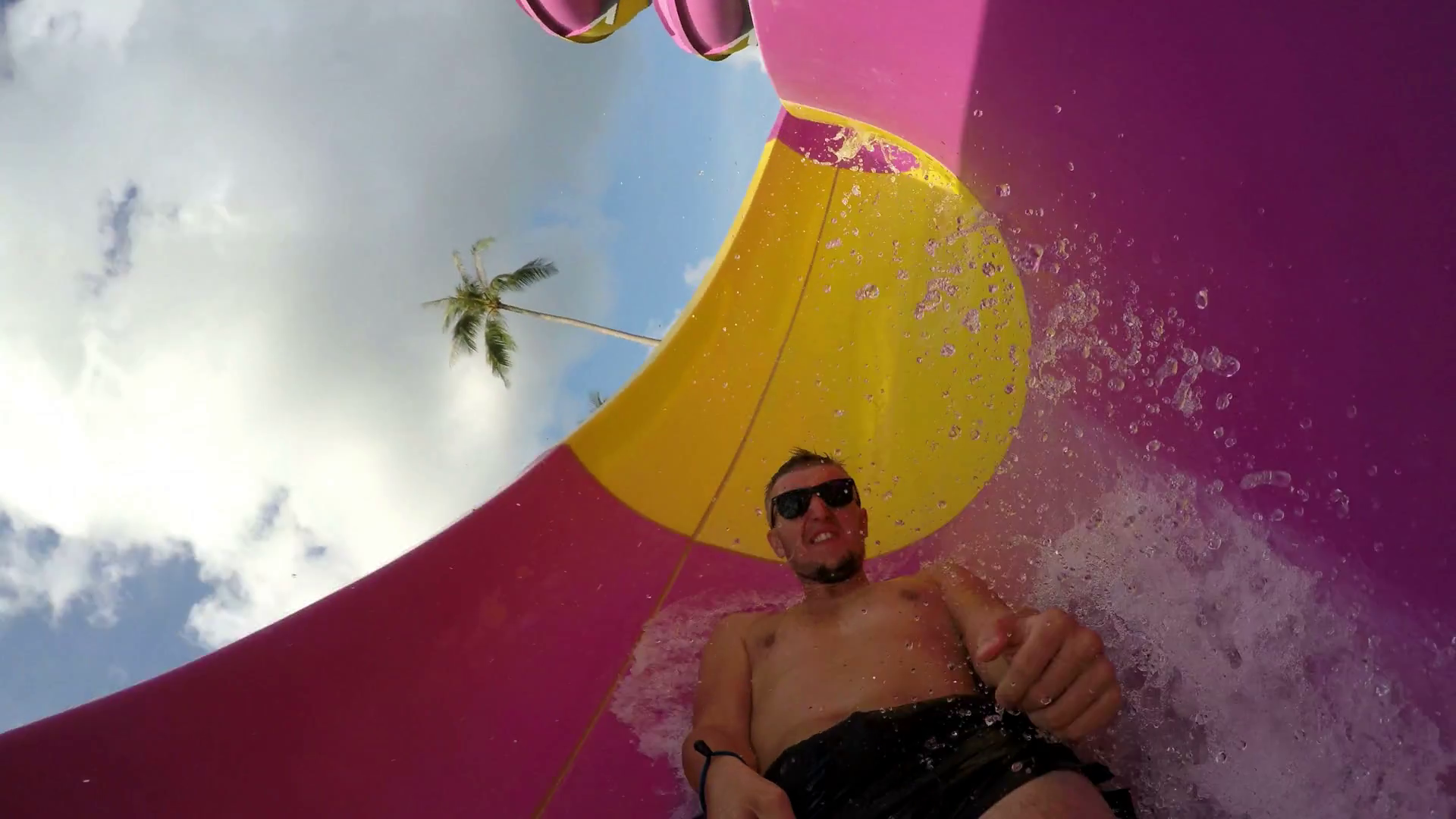 Cheerful Man Sliding Fast A Water Slide Tube In Aqua Park 4k Funny Action VideoÂ