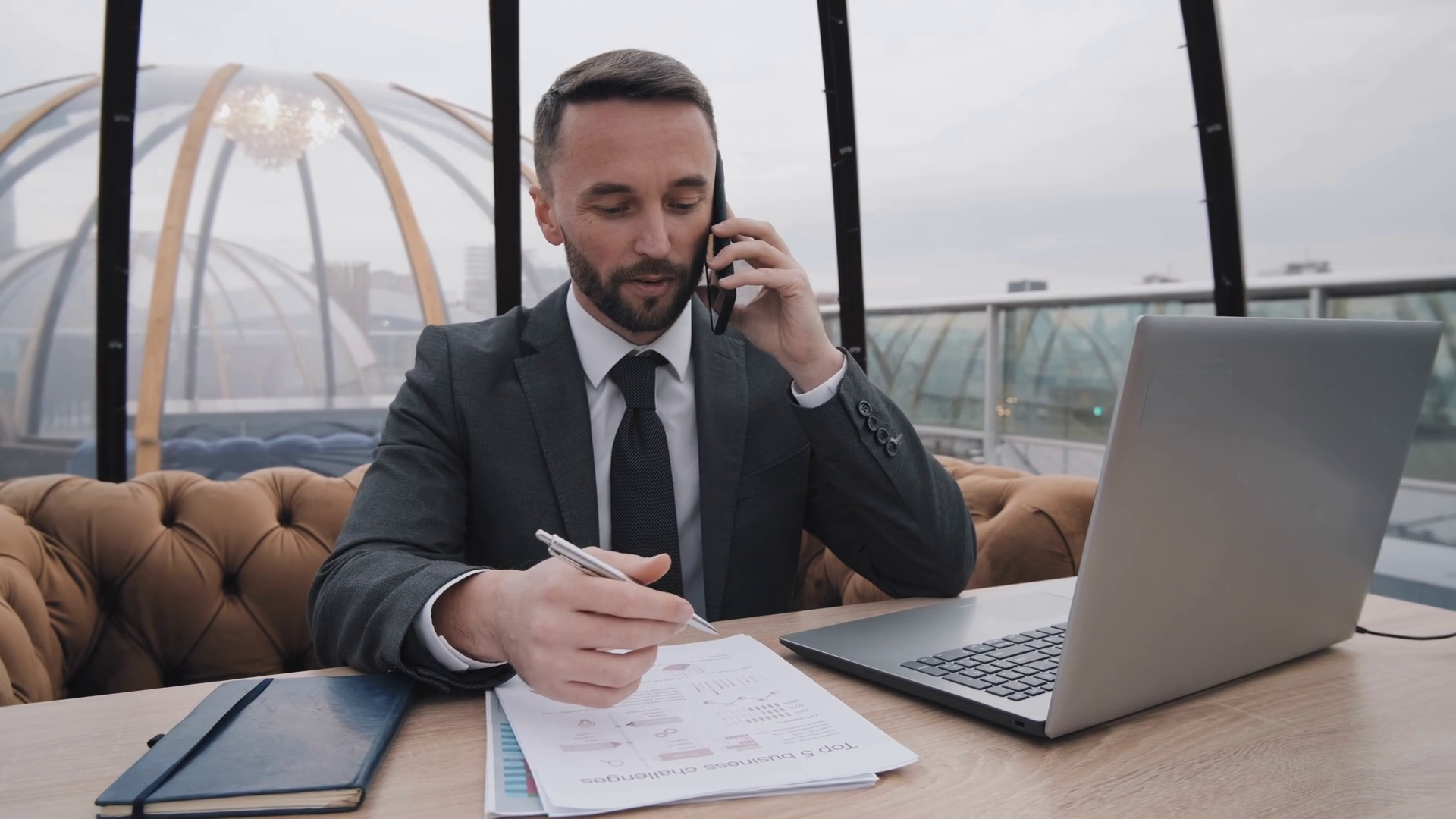Young Businessman In Formal Suit Working At Rooftop CafeÂ