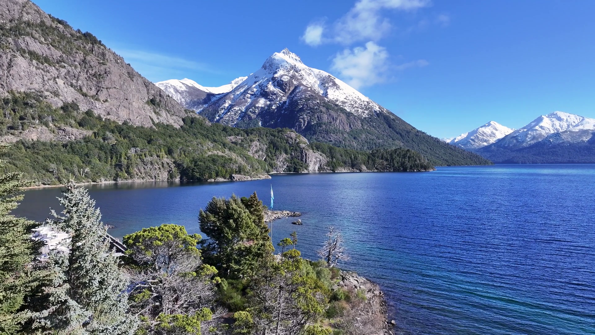 Chico Circuit In San Carlos De Bariloche Patagonia Argentina Tropical River With A Scenic Forest Trees Viewed From Above Outdoor Tourism Icon Patagonia Glacier Snow Covered Aerial ViewÂ