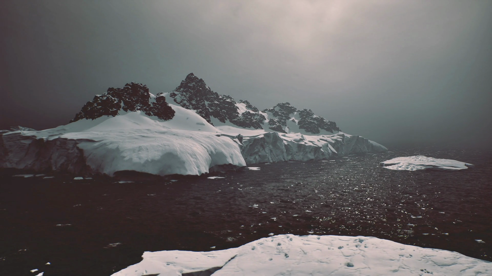 Chilly Landscape Scene Frozen Shoreline Captures Distant Snowy Peaks