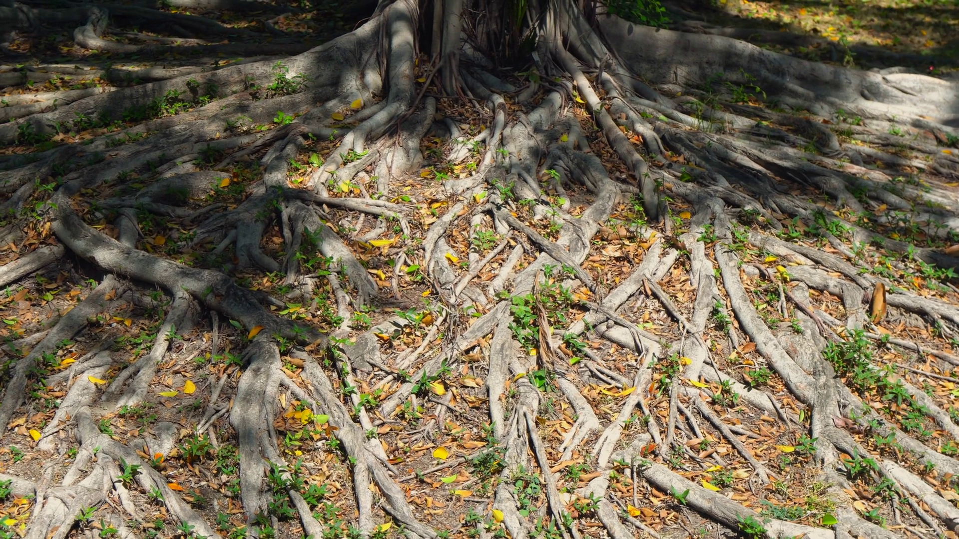 Chinese Rainforest With Old Plants Shadows From Leaves Cover Thick Foot Of Ancient WoodÂ