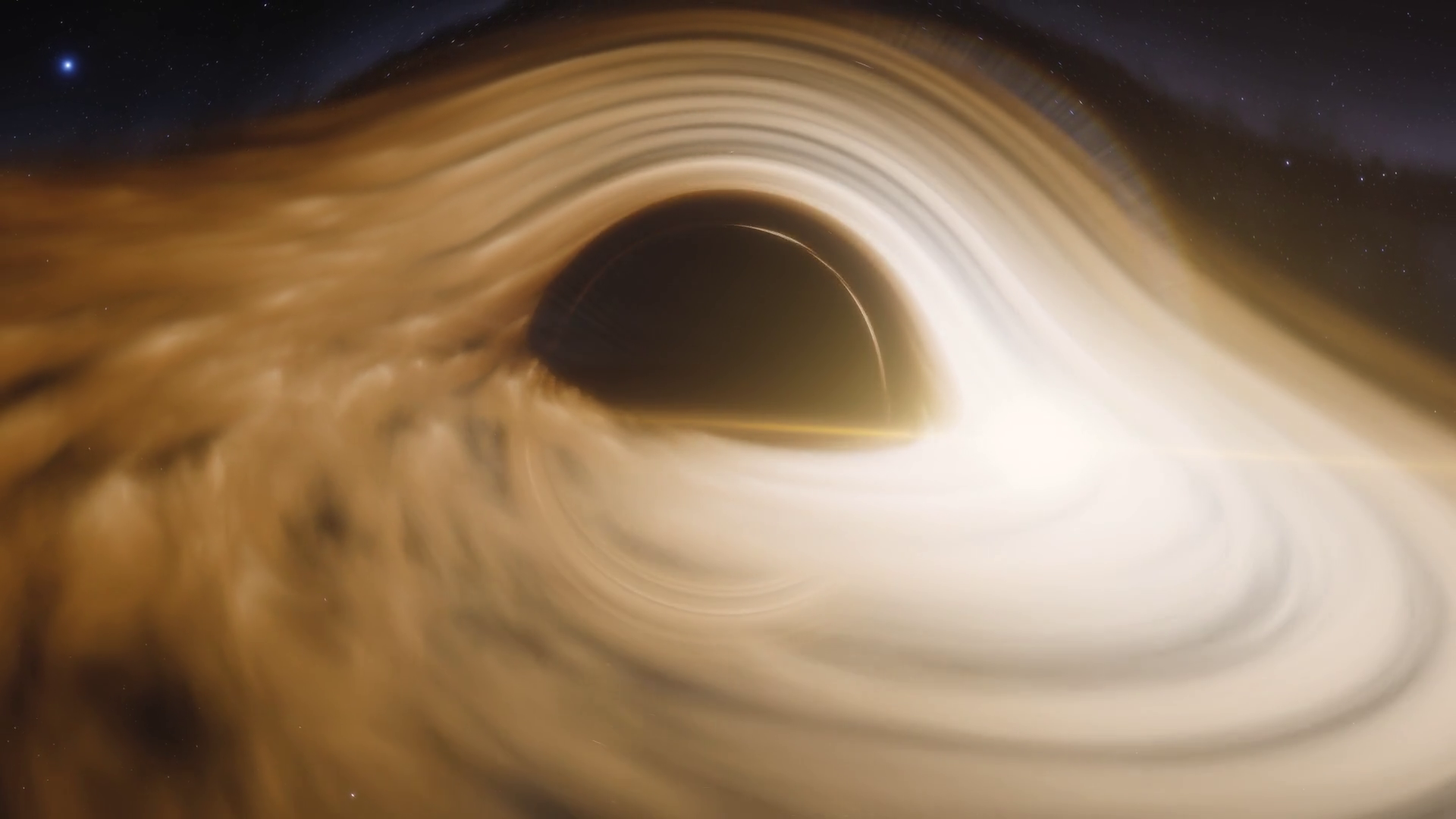 Cinematic Animation Of Supermassive Black Hole Accretion Disk Of Matter On The Event Horizon Of Black Hole Space Light And Time Are Distorted By Strong Gravity On The Event Horizon