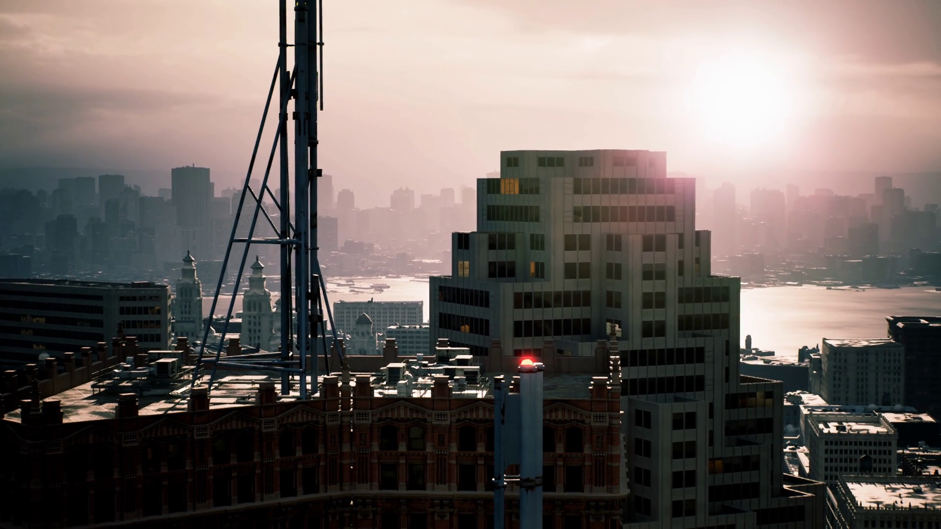 City Skyline At Sunset With Buildings And Communication Tower In View