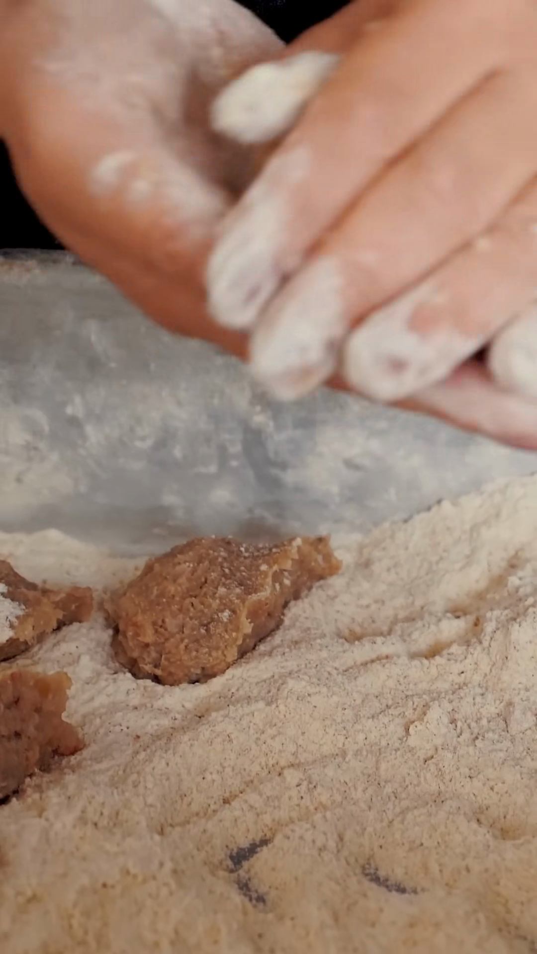 Closeup A Female Cook Cooks Meatballs Dipping Balls Of Minced Meat In Flour And Spreading It On A Baking TrayÂ