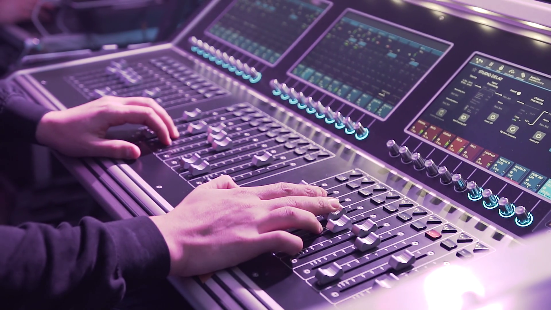 Close Up Hand Of The Sound Producer Professional Audio Operator Working On Audio Mixer Knobs Controls Of Video And Audio Mixing Console Close Up Of Hands Using It Slow MotionÂ