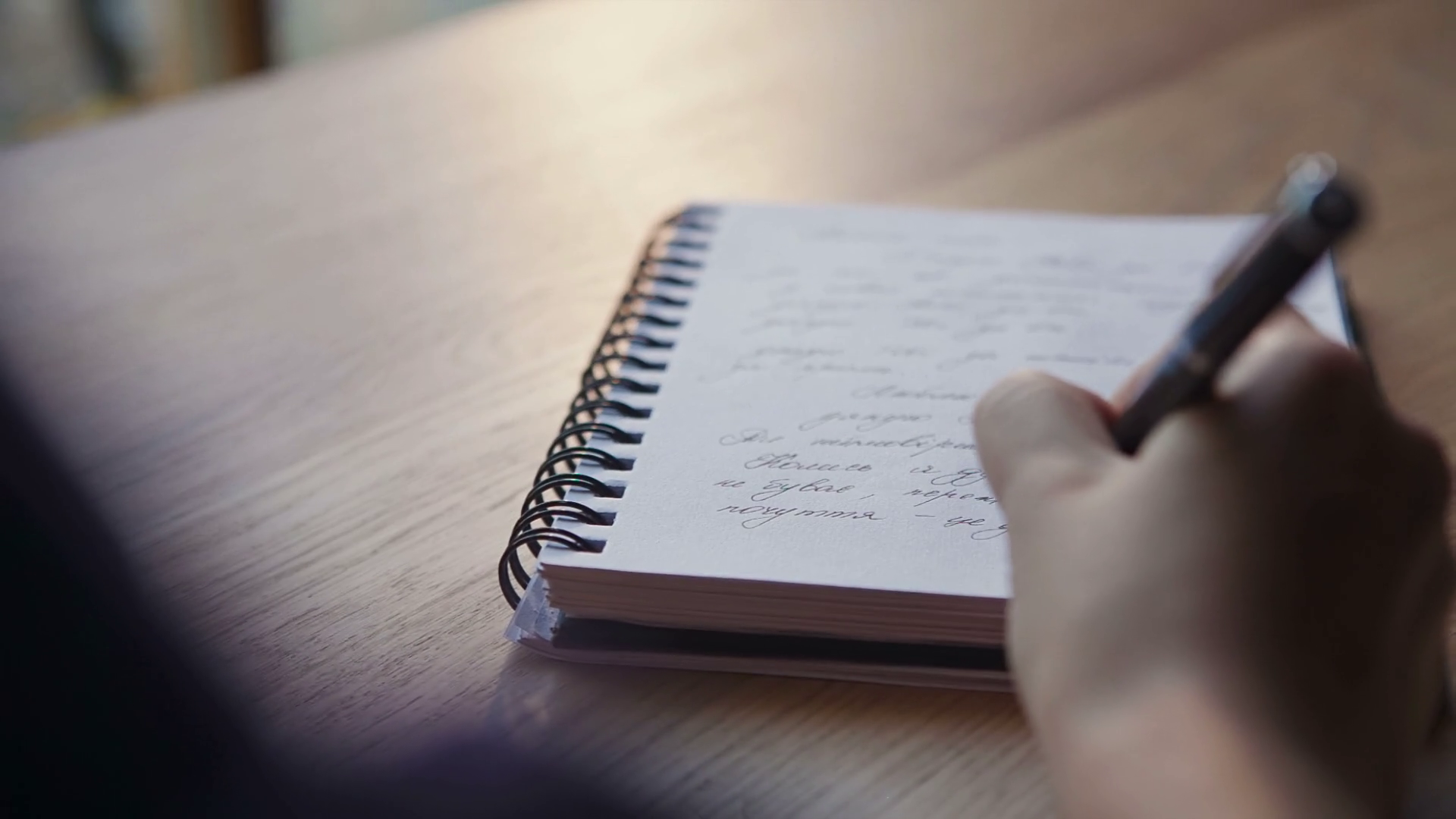 Close Up Of A Woman Writer Hand Writing In A Notebook At Home In The KitchenÂ