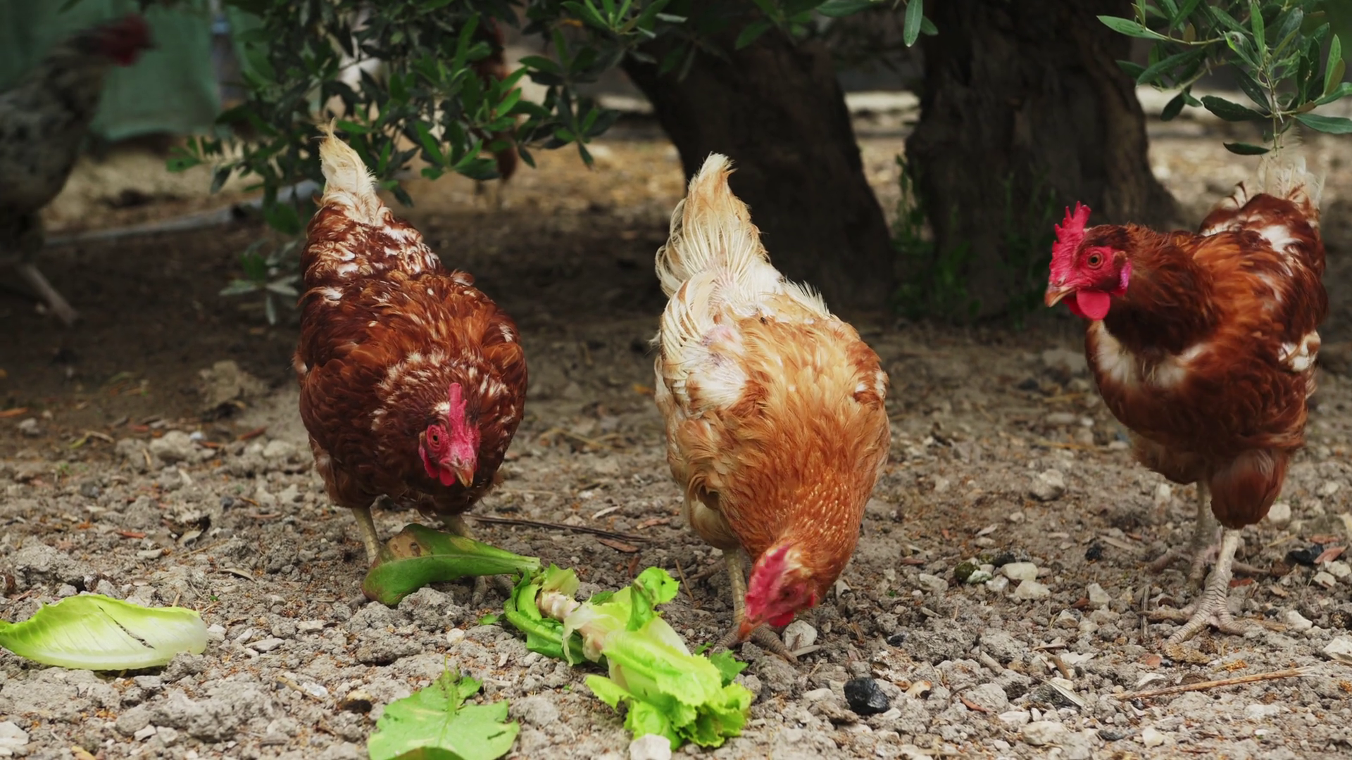 Close Up Of Freerange Domestic Chickens Foraging And Eating Fresh Green Lettuce Leaves On A Rustic Farmyard Ground Showcasing Natural Poultry Behavior And Organic Farming LifeÂ
